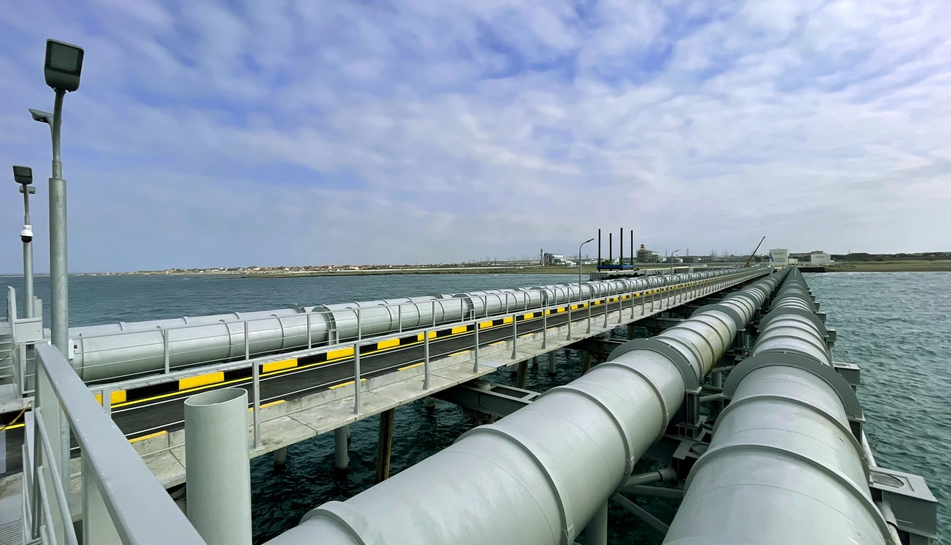 Bildirilib ki, son 20 ildə Xəzər dənizində suyun səviyyəsinin iki metrə yaxın aşağı düşməsi ölkənin ikinci böyük elektrik stansiyası olan və Bakının 40 faizdən artıq ərazisini elektrik enerjisi ilə təchiz edən, ümumi gücü 800 MVt olan “Şimal” Elektrik Stansiyasının işində ciddi çətinliklər yaratmışdı. Çünki suyun səviyyəsinin gündən-günə aşağı düşməsi stansiyanın soyutma suyu ilə təchiz olunmasında ciddi problem yaradırdı və ən böyük həcmdə enerji istehsal edən “Şimal-1” və “Şimal-2” Elektrik stansiyalarının yaxın perspektivdə fəaliyyətini tamamilə dayandırması qaçılmaz idi. Bu təhlükəni aradan qaldırmaq üçün təxirəsalınmaz şəkildə “AzərEnerji” ASC tərəfindən Xəzər dənizinin içərisinə doğru soyuq suyun 8 metr dərinlikdən götürülməsinə imkan verən 540 metr uzunluğunda estakada və 2 yerdə su nasos stansiyası tikilib. Estakadanın möhkəmliyini təmin etmək məqsədilə hər birinin uzunluğu 30 metr olan 1000 ədəd dəmir boru svay 20 metr dənizin dibinə vurulub və betonlanıb.