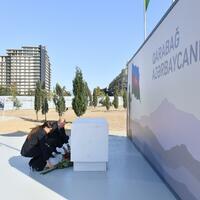 Teleqraf.com xəbər verir ki, dövlə başçısı və birinci xanım parkın girişində xatirə daşının önünə gül dəstələri qoyublar.