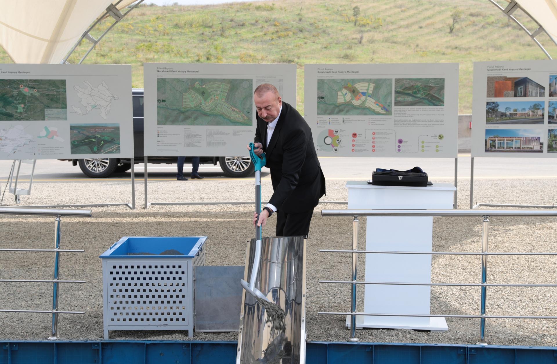 Azərbaycan Respublikasının Prezidenti İlham Əliyev oktyabrın 16-da Füzuli rayonunun Qoçəhmədli kəndinin təməlini qoyub.