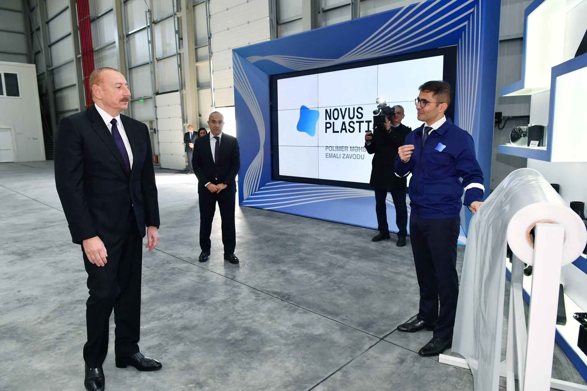 Bildirildi ki, “Novus Plastica” MMC-yə 2020-ci ilin avqustunda Sumqayıt Kimya Sənaye Parkının rezidenti statusu verilib. Sənaye parkının 3,5 hektar ərazisində inşa edilmiş müəssisədə iki növ məhsulun – polietilen borular üçün qara karbon konsentrat qatqısının və sənaye sahəsində qablaşdırmada istifadə edilən polietilen örtüklərin istehsalı həyata keçirilir. İtaliyanın qabaqcıl texnologiyalarının tətbiqi ilə istehsal olunan məhsulların daxili bazarda satışı ilə yanaşı, Türkiyəyə, MDB ölkələrinə ixracı da planlaşdırılır. İnvestisiya kapitalı 12,1 milyon manatdan çox olan müəssisədə 50-dək insan daimi işlə təmin ediləcək.