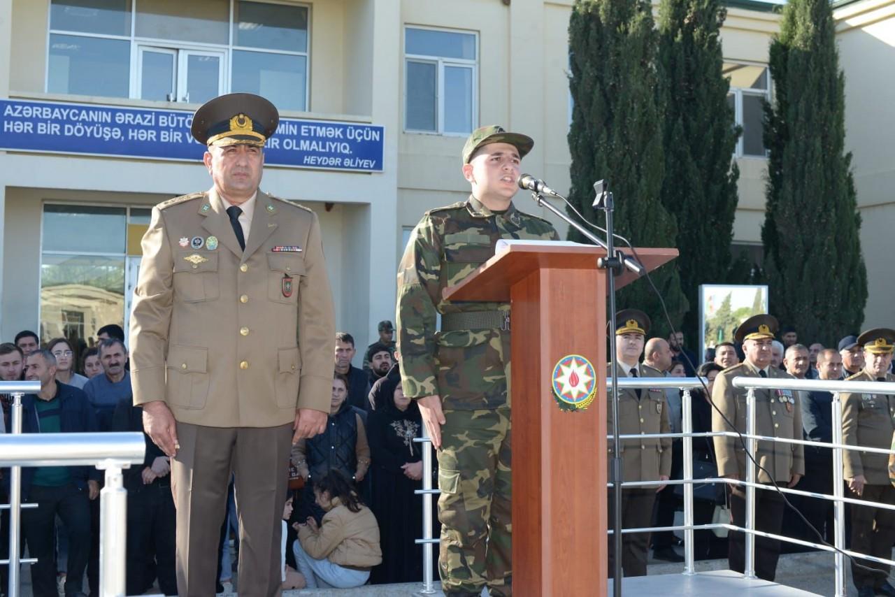 Mərasimdə çıxış edən gənc əsgər Rəvan Bədəlov əsgər yoldaşları adından əsgəri borcu şərəflə yerinə yetirəcəklərinə, baş verə biləcək fövqəladə hallar zamanı zərərçəkən insanların xilas edilməsi üçün əllərindən gələni əsirgəməyəcəklərinə, verilən tapşırıqları sözsüz yerinə yetirəcəklərinə, Vətənə və dövlətə sədaqətlə xidmət edəcəklərinə söz verib.