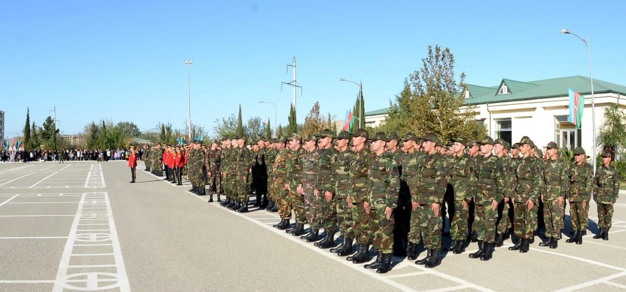 Hərbi andı qəbul edən gənc əsgərlər ölkəmizin suverenliyini, ərazi bütövlüyünü, müstəqilliyini qanları və canları bahasına qoruyacaqlarına, Vətənimizə, xalqımıza layiqli əsgər olacaqlarına and içiblər.