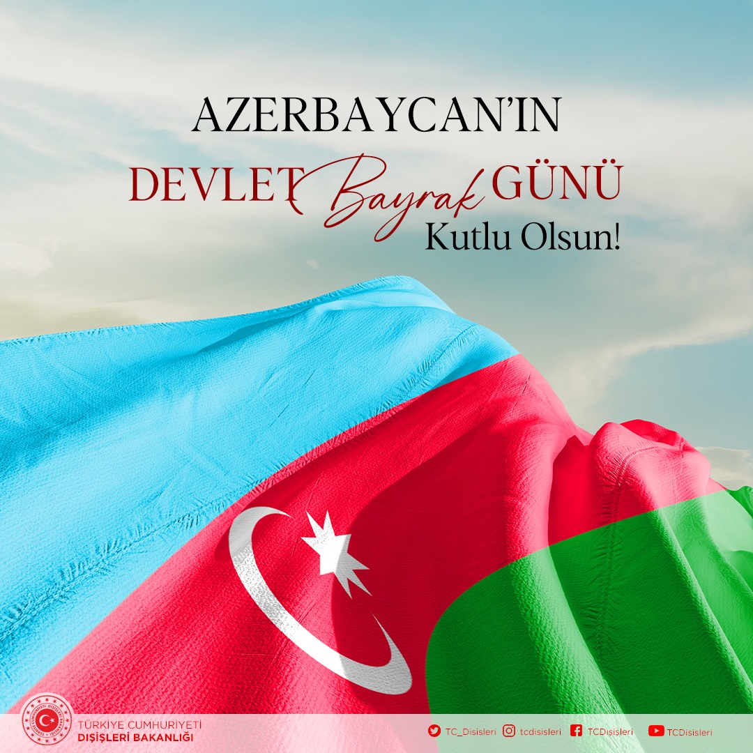 Türkiyə Xarici İşlər Nazirliyi (XİN) 9 Noyabr- Dövlət Bayrağı Günü münasibətilə Azərbaycan dövləti və xalqını təbrik edib.