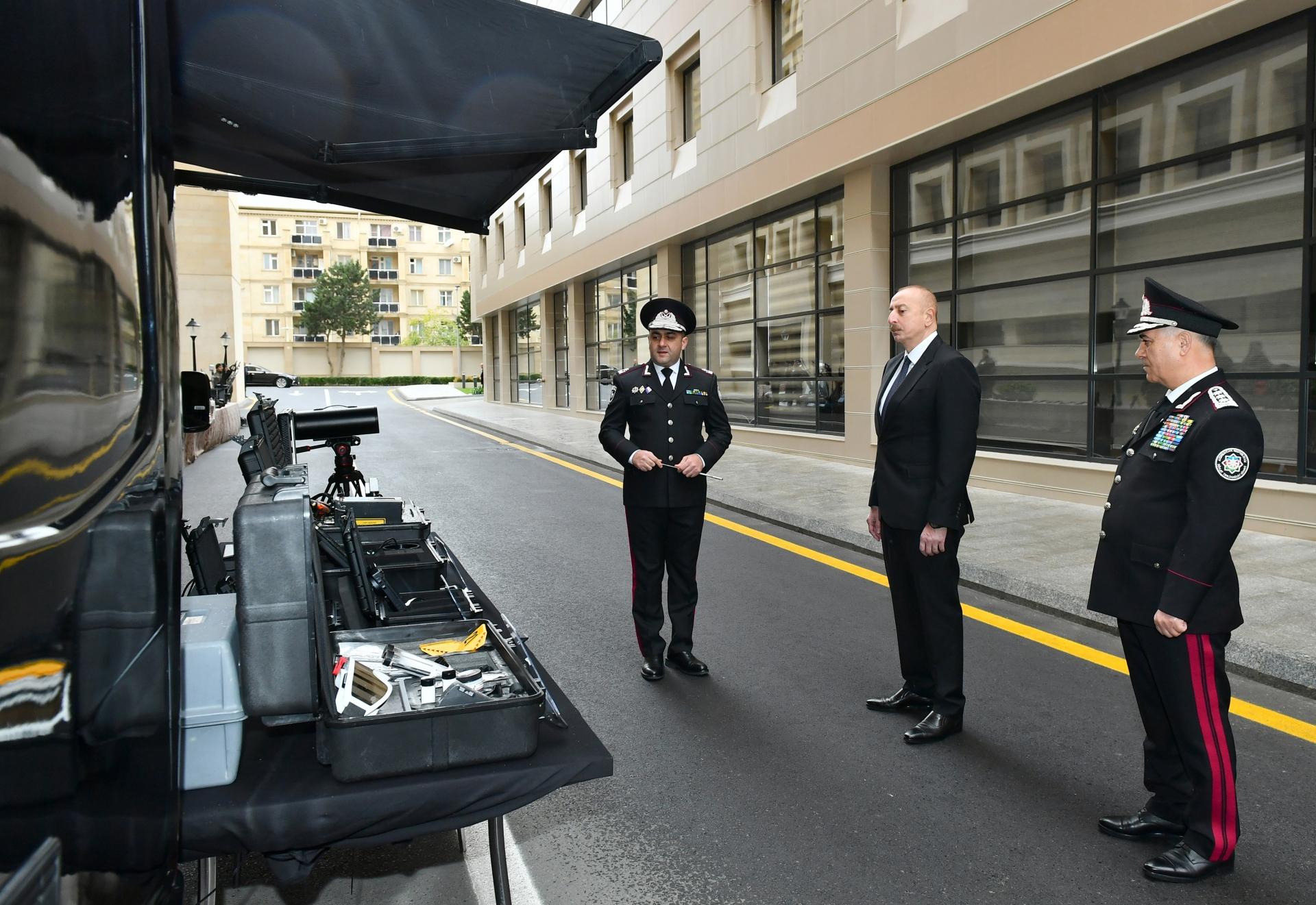 Həmçinin Azərbaycan Prezidentinə digər inzibati binada yerləşən və ən son texnoloji yenilikləri özündə birləşdirən kriminalistika, əməliyyat və şəbəkə idarəetmə mərkəzləri təqdim olunub, cinayət işlərinin təhqiqatı və müvafiq əməliyyat tədbirlərinin həyata keçirilməsi istiqamətində bu mərkəzlərin imkanları barədə məruzə edilib.