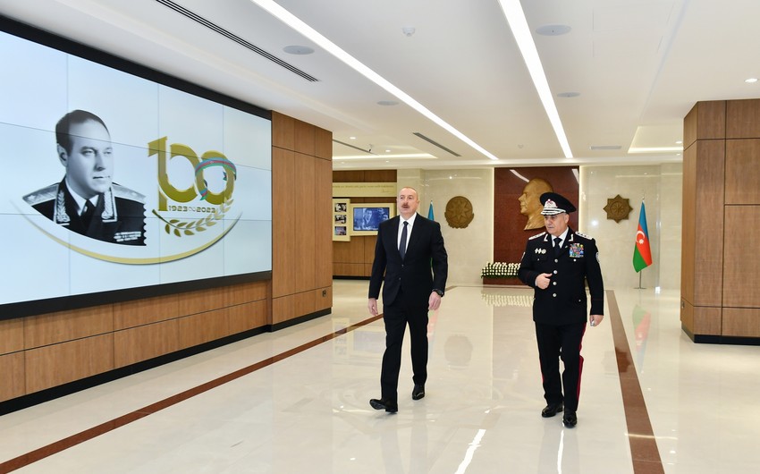 Bildirildi ki, binanın giriş hissəsində Ümummilli Lider, Azərbaycan təhlükəsizlik orqanlarının fəxri rəhbəri, bu orqanların inkişafında müstəsna xidmətləri olan Heydər Əliyevin barelyefi qoyulub, Ulu Öndərin arxiv sənədlərinin nümayiş olunduğu guşə və dahi şəxsiyyətin mənalı ömrünün 25 ilini həsr etdiyi təhlükəsizlik orqanlarındakı fəaliyyətini əks etdirən fotoşəkillərdən ibarət stend yaradılıb.