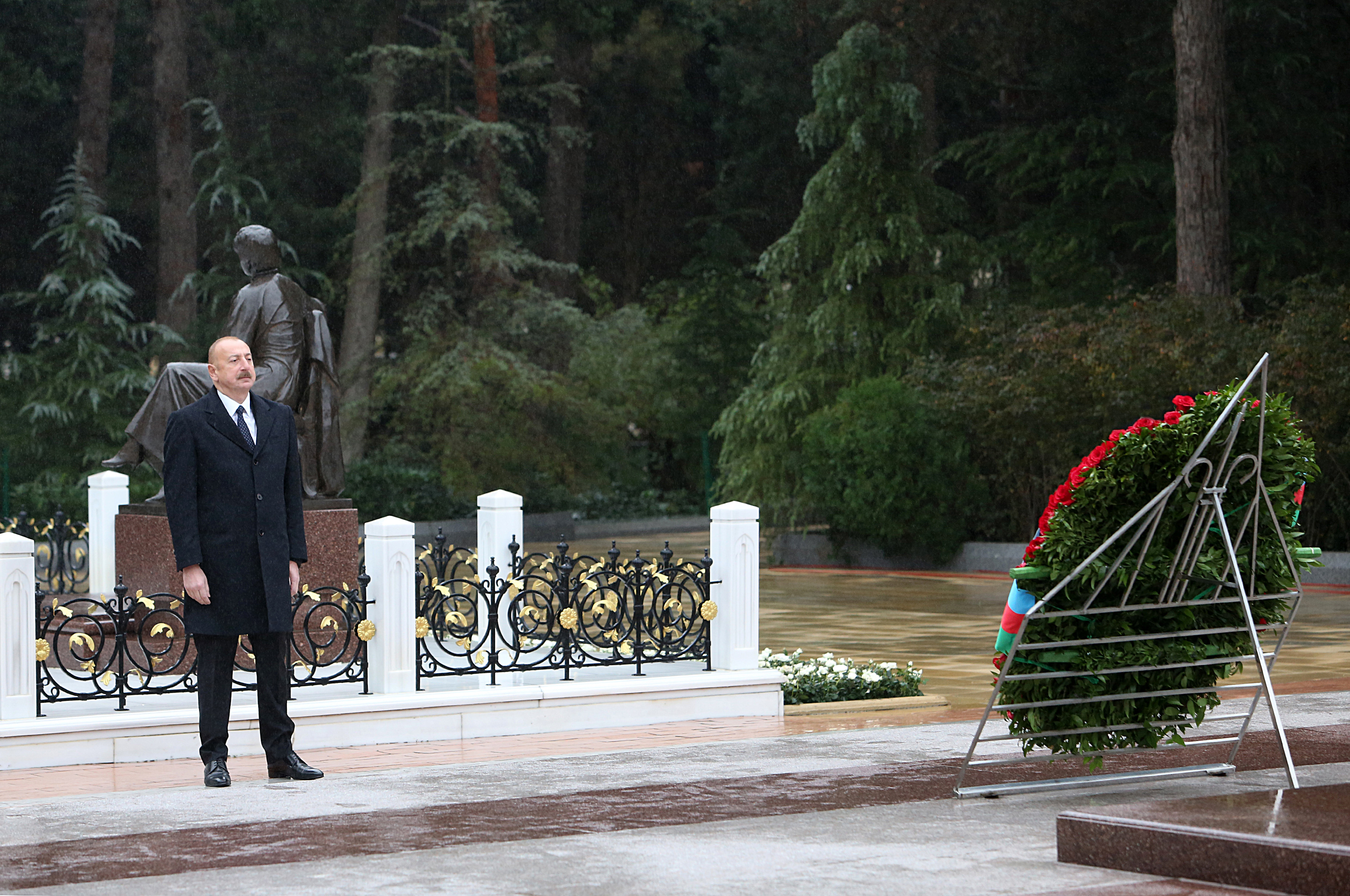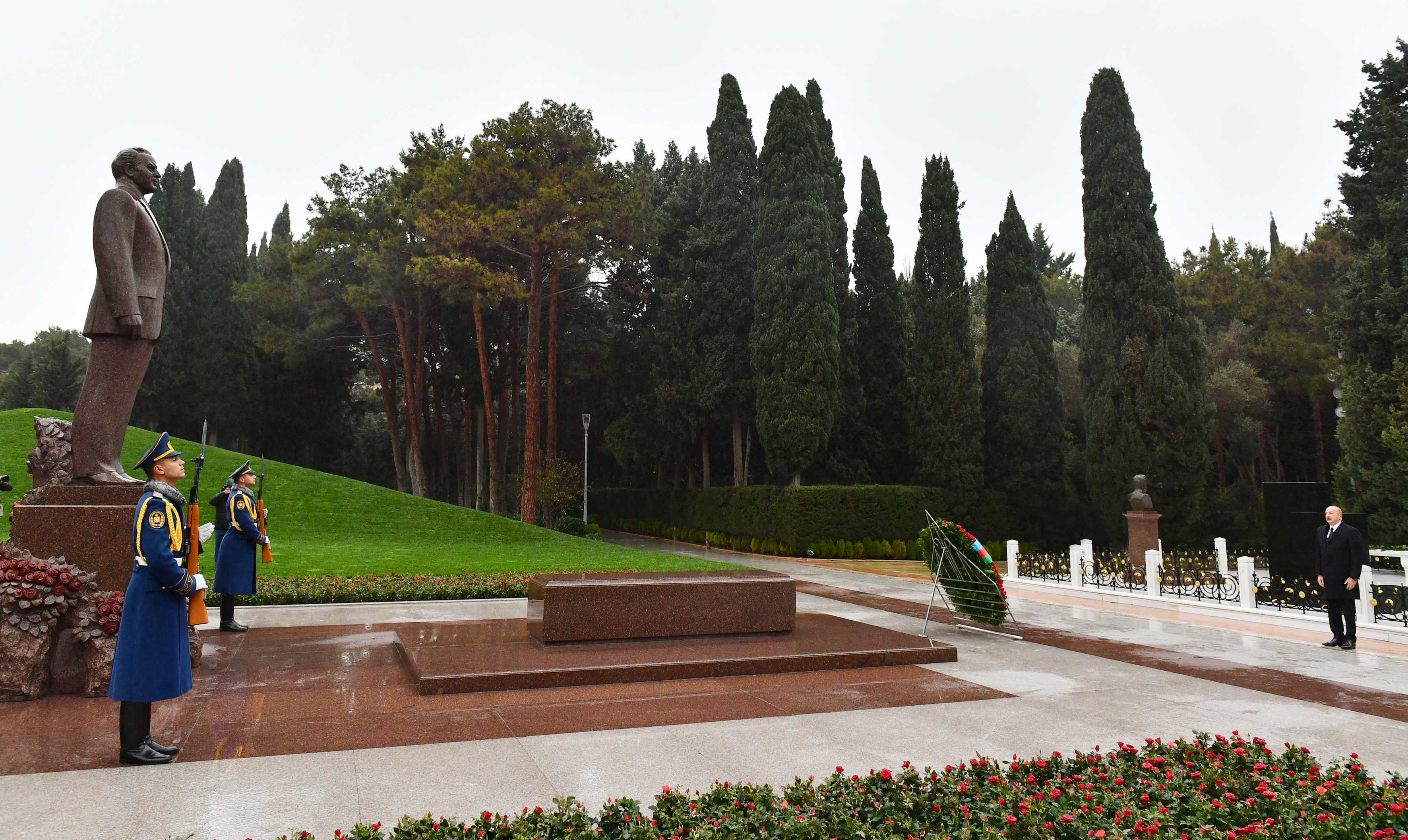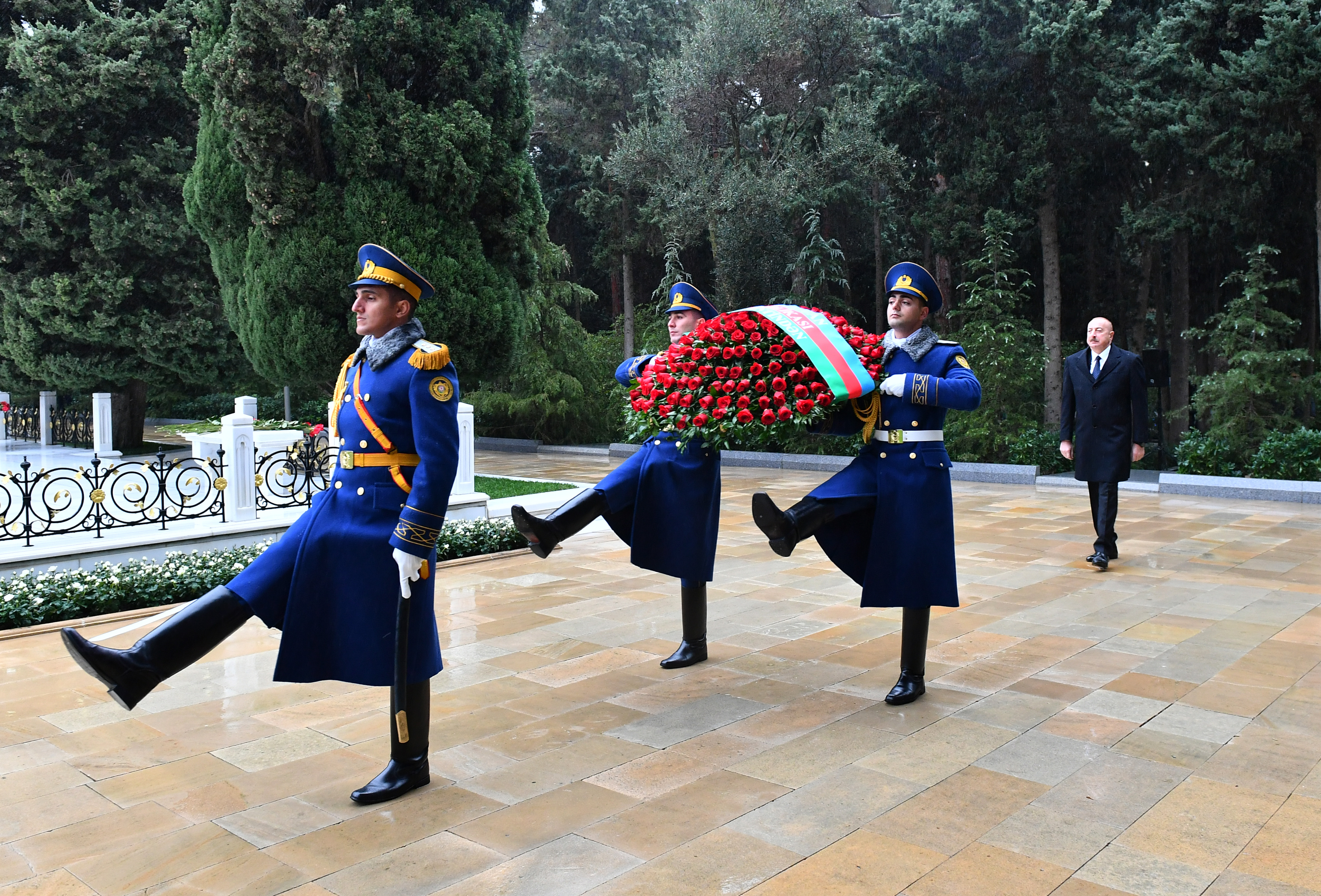 Prezident İlham Əliyev Ulu Öndərin məzarı önünə əklil qoyub.