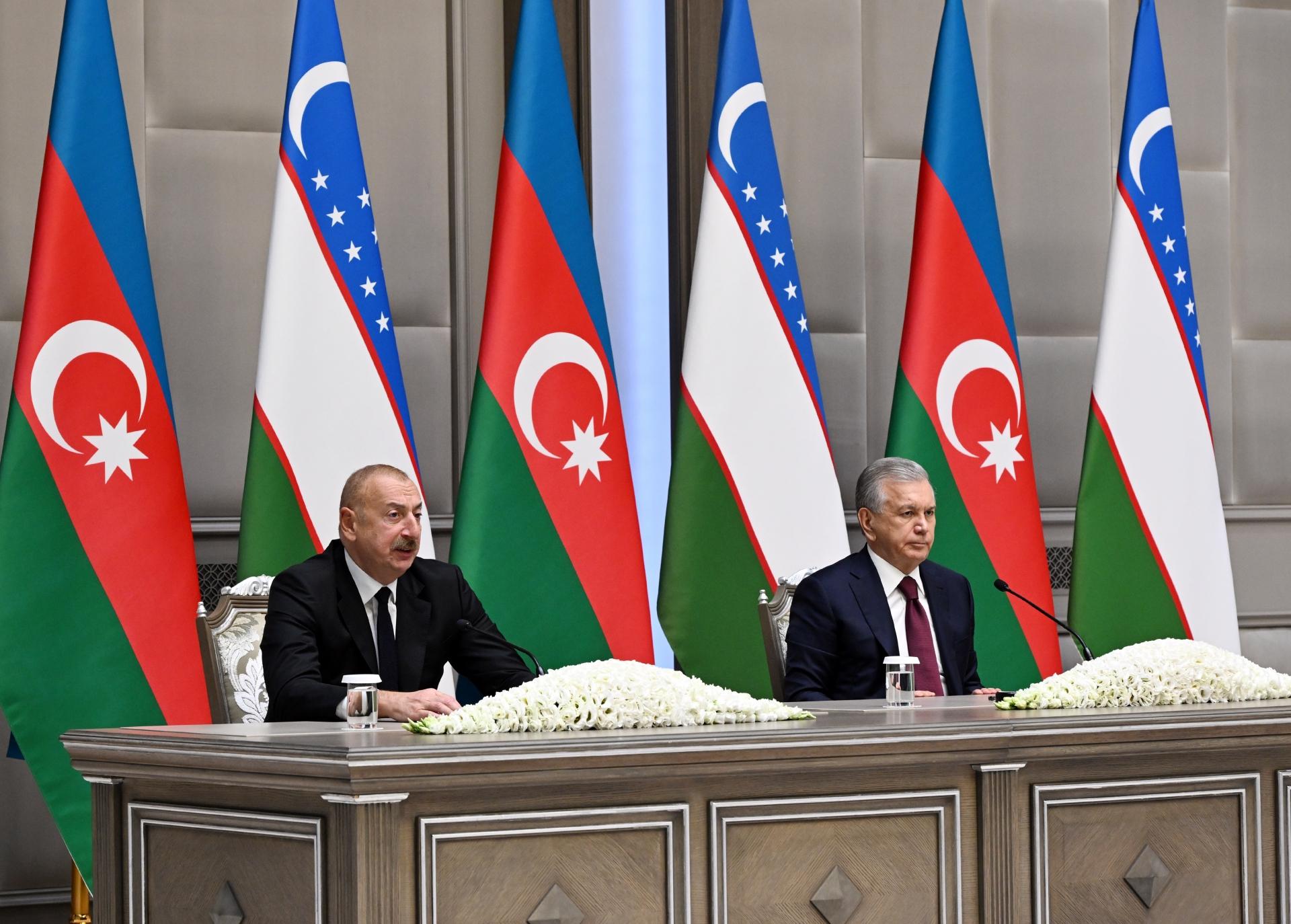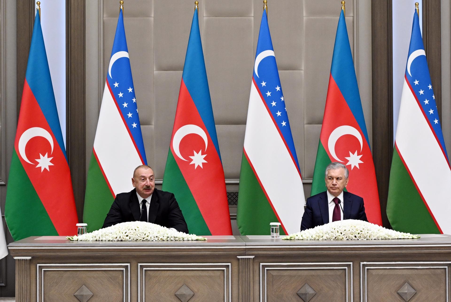 .Avqustun 23-də Daşkənddə sənədlərin imzalanması mərasimi başa çatdıqdan sonra Azərbaycan Respublikasının Prezidenti İlham Əliyev və Özbəkistan Respublikasının Prezidenti Şavkat Mirziyoyev mətbuata bəyanatlarla çıxış ediblər