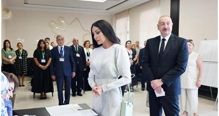 "Sentyabrın 1-də Azərbaycan Respublikasının Milli Məclisinə növbədənkənar seçkilər keçirilir. Azərbaycan Respublikasının Prezidenti İlham Əliyev, birinci xanım Mehriban Əliyeva və qızları Leyla Əliyeva Bakı şəhərinin 7 saylı Səbail seçki dairəsinin 6 nömrəli orta məktəbdə yerləşən 1 saylı seçki məntəqəsində səs veriblər".