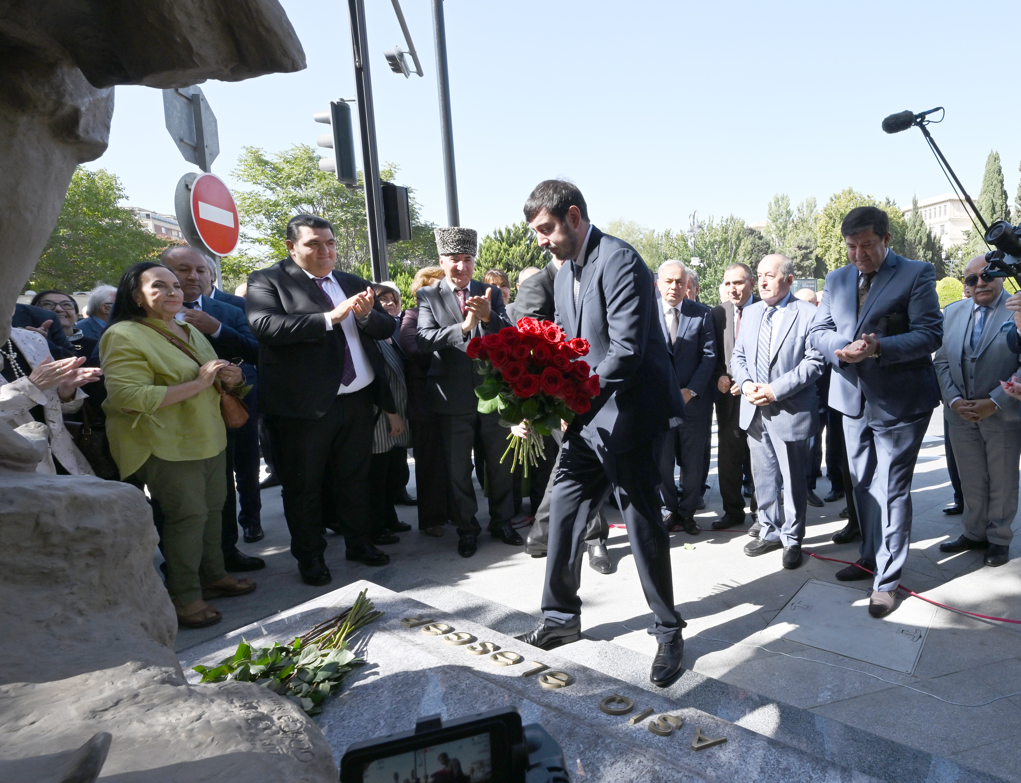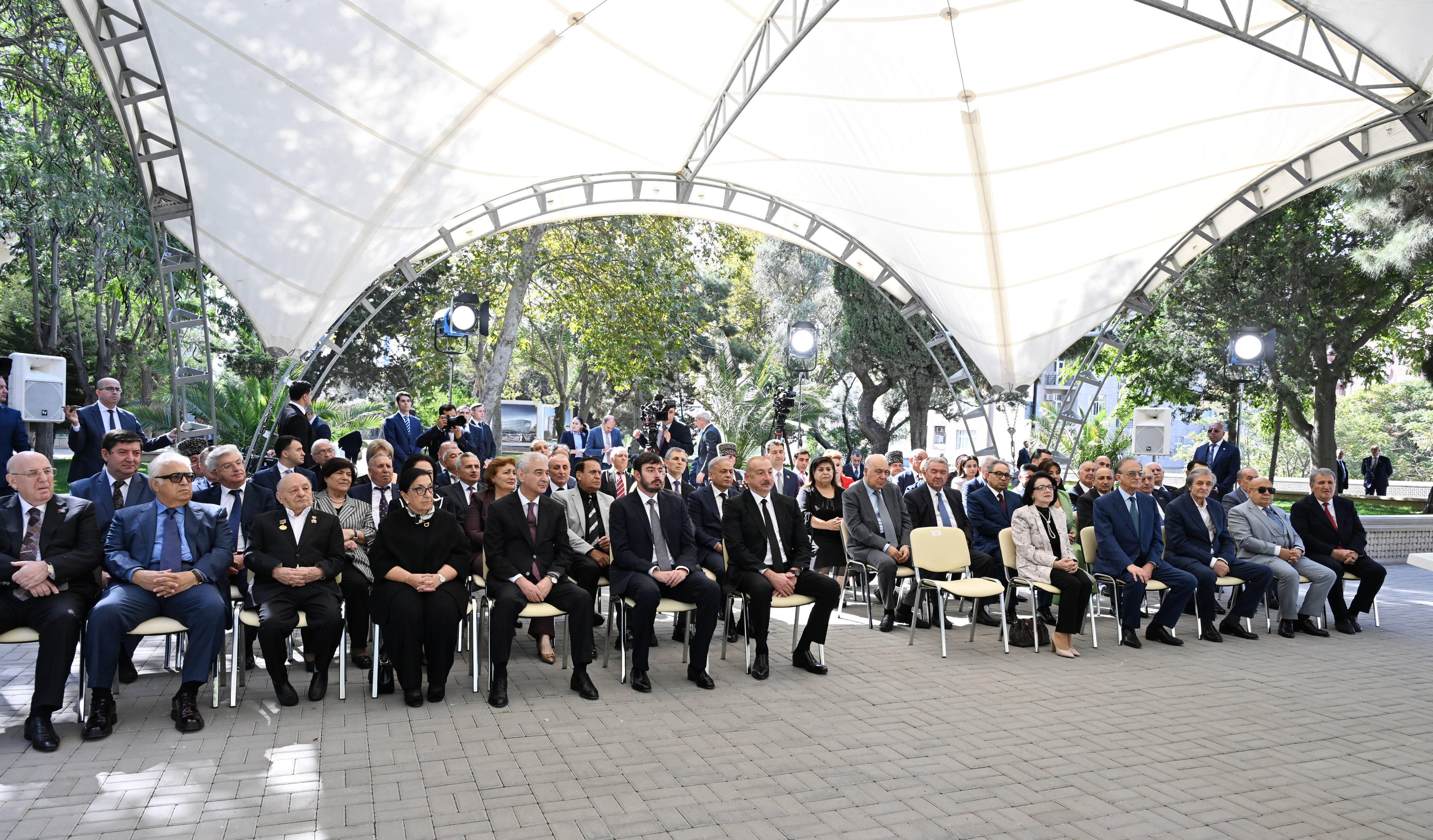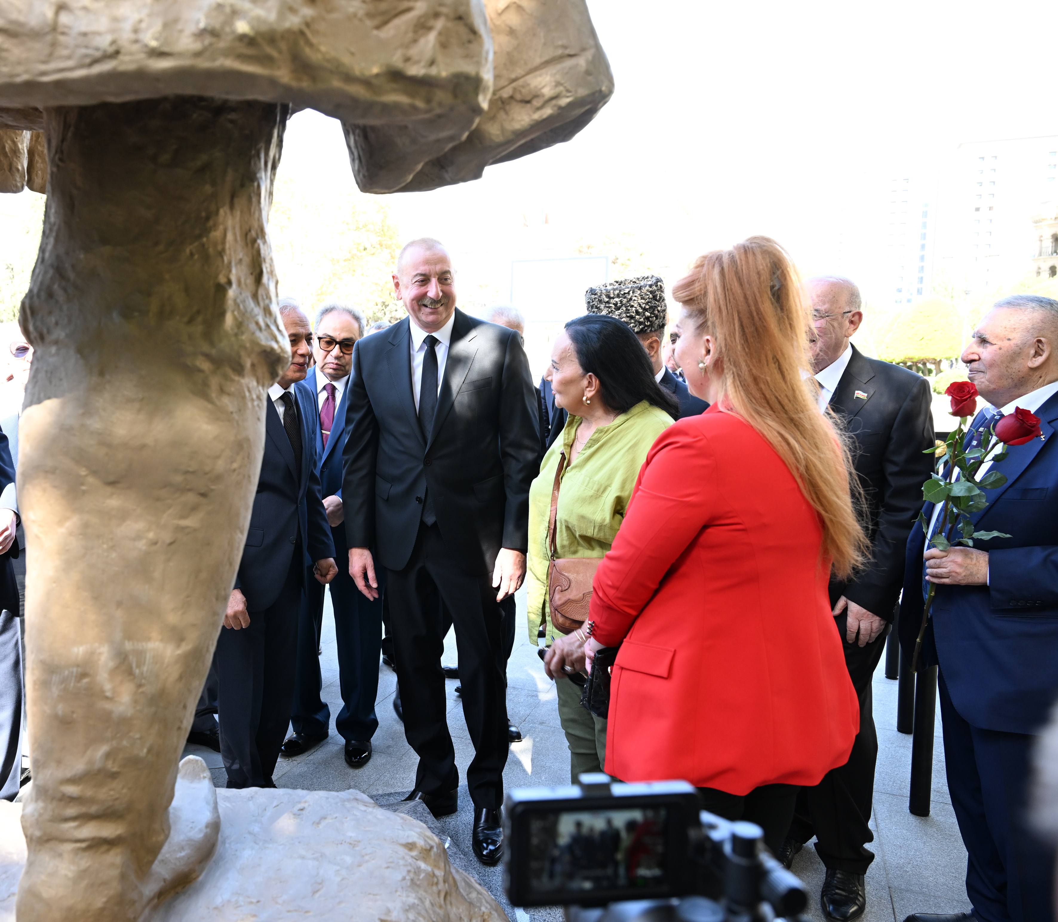 -Hörmətli cənab Prezident, hörmətli tədbir iştirakçıları. Gündən-günə gözəlləşən Bakını həm də dünyada ən çox sənətkarları, heykəlləri olan bir şəhər adlandıra bilərik. Ancaq elə son illərdə dörd böyük bəstəkarımızın - Qara Qarayevin, Fikrət Əmirovun, Niyazinin, Tofiq Quliyevin, üç böyük müğənnimizin - Bülbülün, Rəşid Behbudovun, Müslüm Maqomayevin heykəlləri ucaldılıb. Bu heykəllərin əksəriyyəti o vaxt ucaldılır ki, biz tariximizin ən şərəfli, ən qürurlu günlərini yaşayırıq. Müzəffər Prezidentimizin rəhbərliyi ilə qəhrəman Azərbaycan Ordusu 30 illik həsrətimizə son qoydu, Qarabağın tacı Şuşa başda olmaqla, Qarabağ torpaqları azad olundu. 23 saatlıq antiterror əməliyyatında 200 ilin problemi həll olundu. Buna görə, bu xoşbəxtliyi yaşadığımıza görə mən bir daha hörmətli Prezidentimizə dərin təşəkkürlərimi bildirirəm.