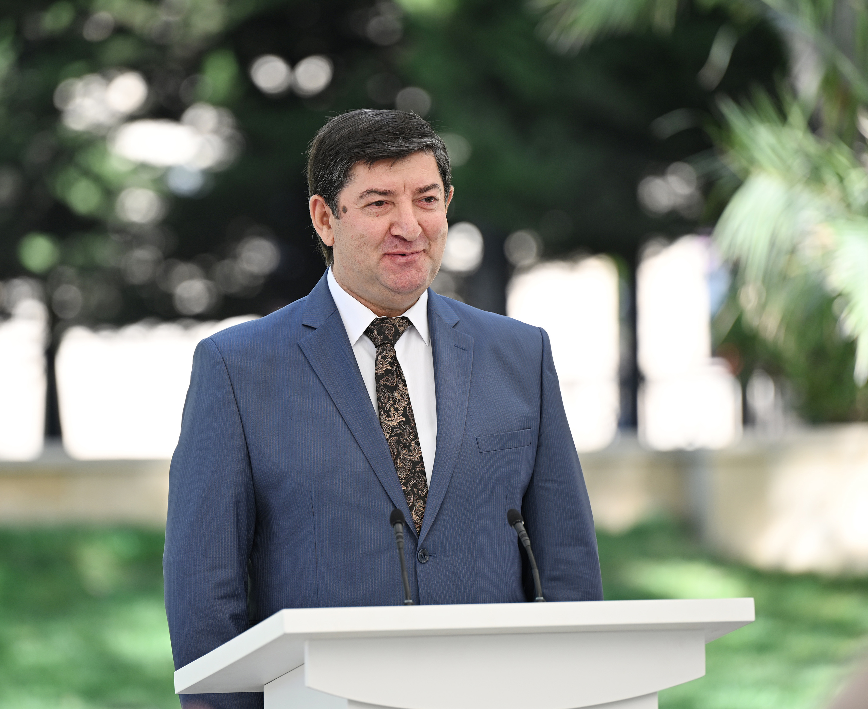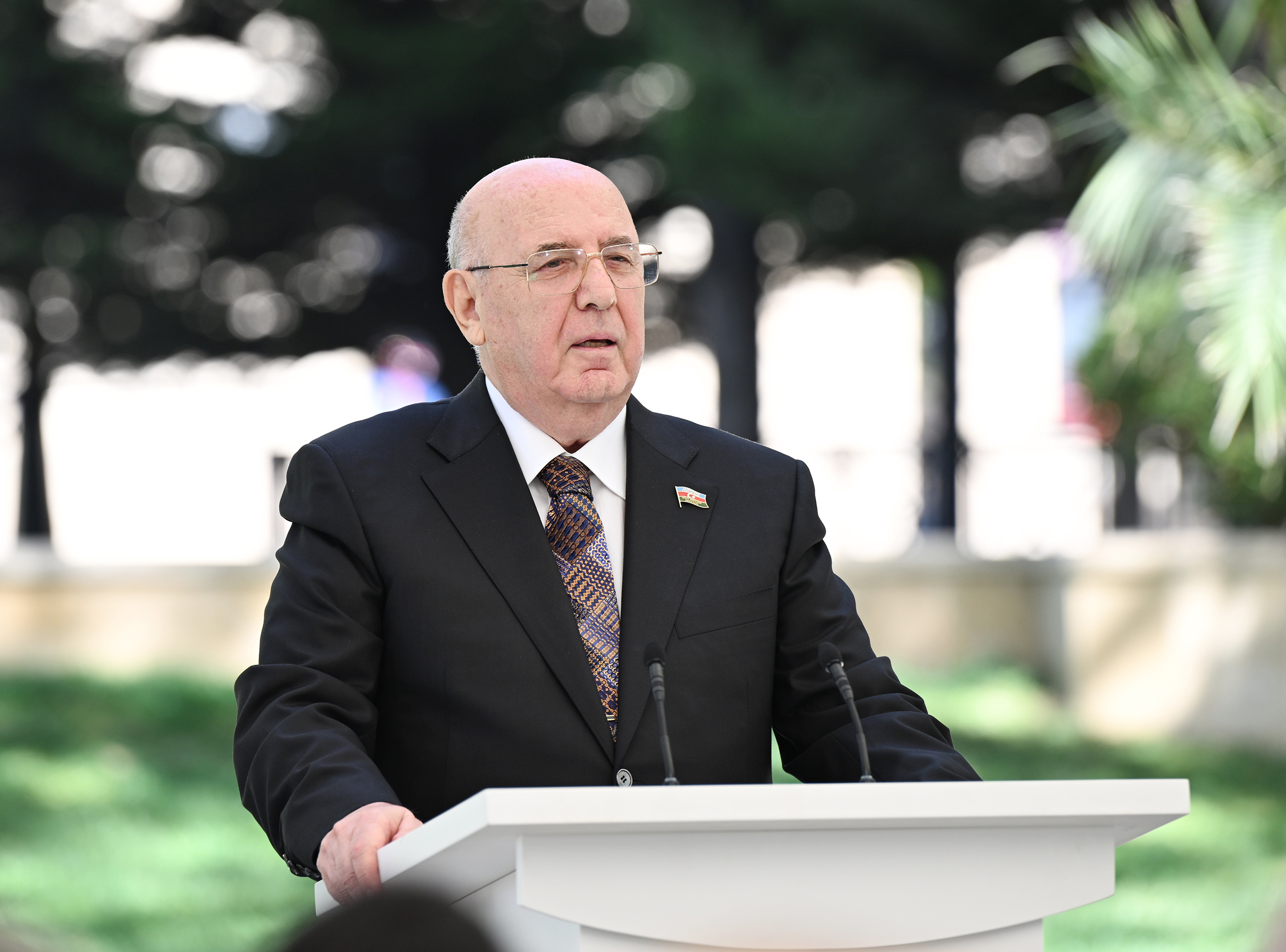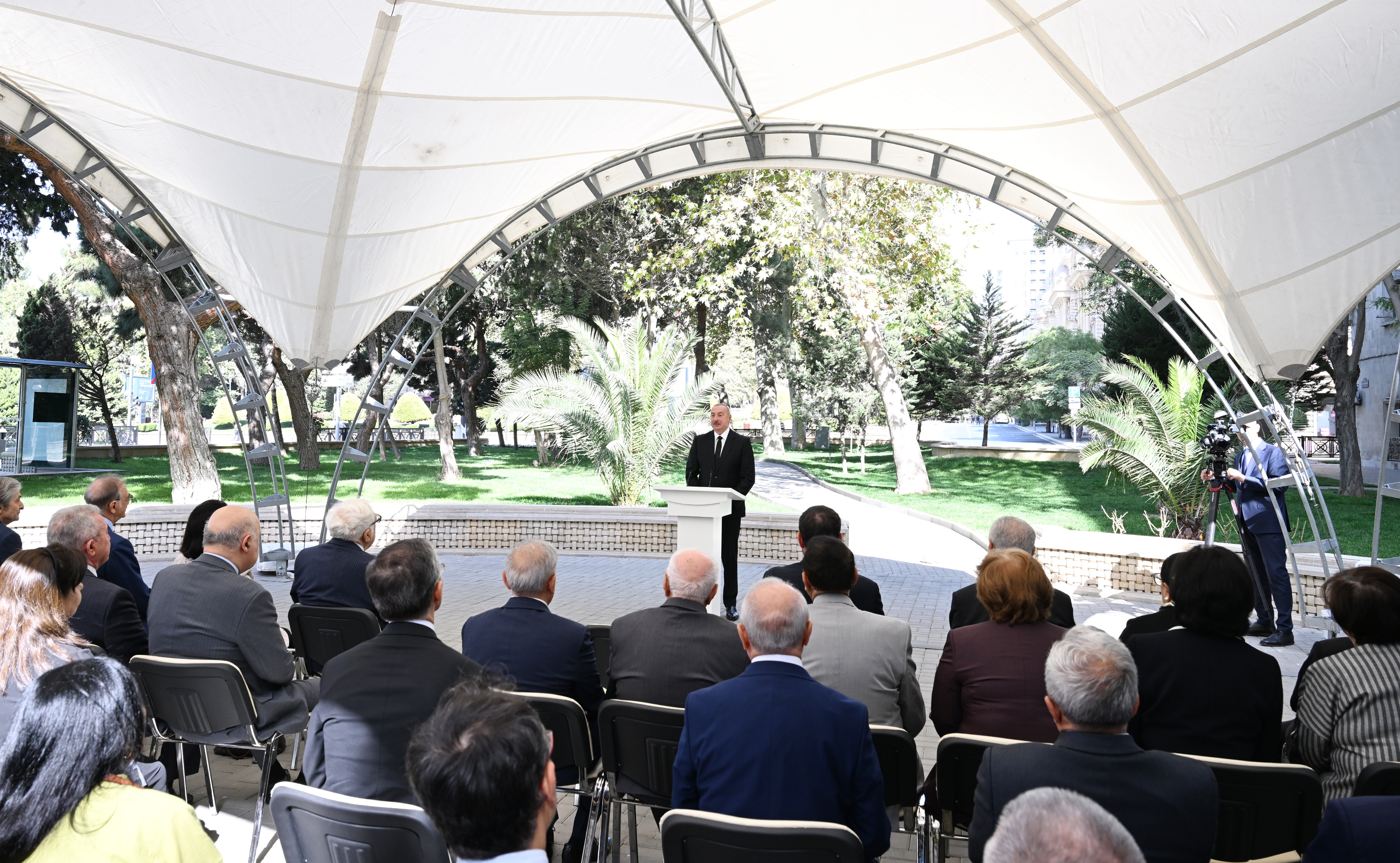 -Hörmətli cənab Prezident, hörmətli tədbir iştirakçıları. Gündən-günə gözəlləşən Bakını həm də dünyada ən çox sənətkarları, heykəlləri olan bir şəhər adlandıra bilərik. Ancaq elə son illərdə dörd böyük bəstəkarımızın - Qara Qarayevin, Fikrət Əmirovun, Niyazinin, Tofiq Quliyevin, üç böyük müğənnimizin - Bülbülün, Rəşid Behbudovun, Müslüm Maqomayevin heykəlləri ucaldılıb. Bu heykəllərin əksəriyyəti o vaxt ucaldılır ki, biz tariximizin ən şərəfli, ən qürurlu günlərini yaşayırıq. Müzəffər Prezidentimizin rəhbərliyi ilə qəhrəman Azərbaycan Ordusu 30 illik həsrətimizə son qoydu, Qarabağın tacı Şuşa başda olmaqla, Qarabağ torpaqları azad olundu. 23 saatlıq antiterror əməliyyatında 200 ilin problemi həll olundu. Buna görə, bu xoşbəxtliyi yaşadığımıza görə mən bir daha hörmətli Prezidentimizə dərin təşəkkürlərimi bildirirəm.