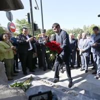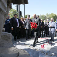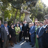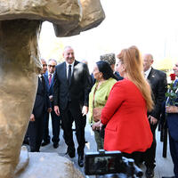 Azərbaycan Prezidenti abidənin önünə gül dəstəsi qoydu.