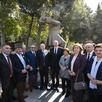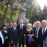 Mən sizə bəstəkarlar və musiqiçilərin heykəlləri haqqında dedim, amma onu da demək istəyirəm ki, bu illərdə bizim ədəbiyyatımızla da bağlı heykəllər ucaldılıb. Dədə Qorqudun, Koroğlunun, Türk dünyasının böyük klassikləri Əlişir Nəvainin, Çingiz Aytmatovun və bu gün də Aşıq Ələsgərin heykəli ucaldılıb. Ona görə də mən Yazıçılar Birliyi adından bir daha cənab Prezidentə təşəkkürlərimi və minnətdarlığımı bildirmək istəyirəm.