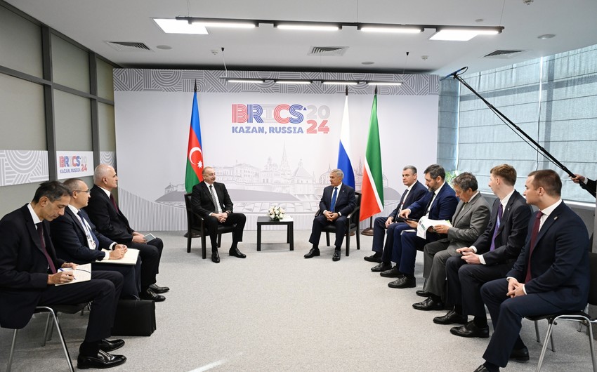 - Rüstəm Nurqaliyeviç, sağ olun. Bir daha qardaş torpaqda olmağıma şadam. İlk növbədə, Sizi və Tatarıstan Respublikasının bütün sakinlərini BRICS sammitinin, həmçinin BRICS+ tədbirinin keçirilməsi münasibətilə təbrik etmək istərdim. Bu, Rusiya Federasiyası rəhbərliyinin respublikaya, şəxsən Sizə, Tatarıstan vətəndaşlarına xüsusi münasibətinin təzahürüdür, həmçinin Tatarıstanın Sizin rəhbərliyinizlə nail olduğu potensialın göstəricisidir. Çünki belə bir irimiqyaslı sammitin keçirilməsi, əlbəttə ki, tədbirlərin, dövlət başçılarının ikitərəfli görüşlərinin təşkili üçün resursların, infrastrukturun, o cümlədən mehmanxana şəbəkəsinin olmasını tələb edir. Ona görə də əvvəlcədən səmimi təbriklərimi çatdırıram. Əminəm ki, sammit ən yüksək səviyyədə keçiriləcək.