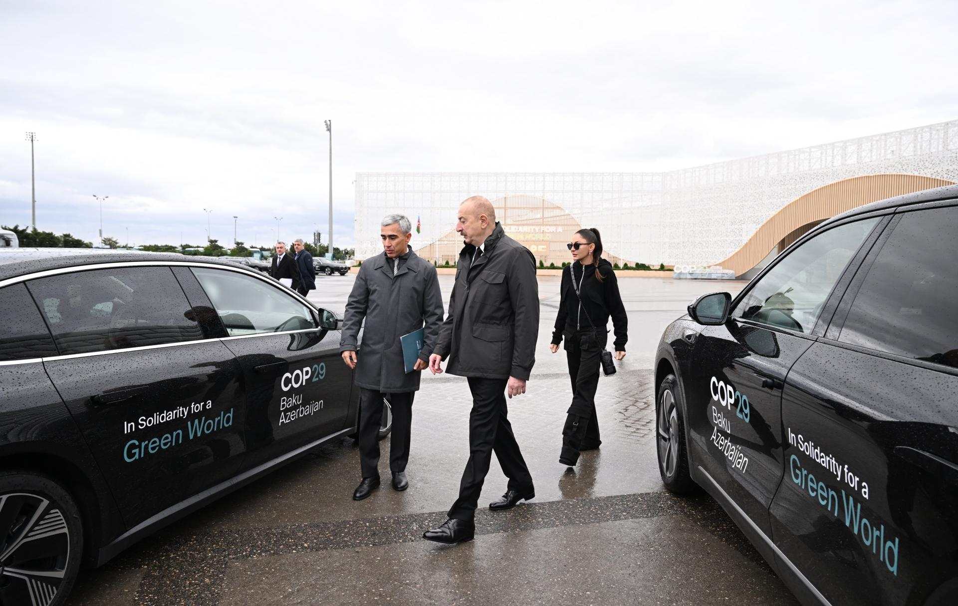 Prezident İlham Əliyev və birinci xanım Mehriban Əliyeva COP29-un keçiriləcəyi tarixlərdə tədbir məkanı ərazisində istifadə ediləcək yük və sərnişindaşıma, eləcə də tibbi və yanğınsöndürmə üçün nəzərdə tutulan elektrikli minimobillər, Sammit zamanı yüksəksəviyyəli qonaqların ərazidə hərəkətini təmin etmək üçün istifadə olunacaq qolf-mobillər və elektrikli avtobuslar, həmçinin tədbir günlərində şəhər ərazisində hərəkət edəcək digər elektrikli nəqliyyat vasitələrinə baxıblar.
