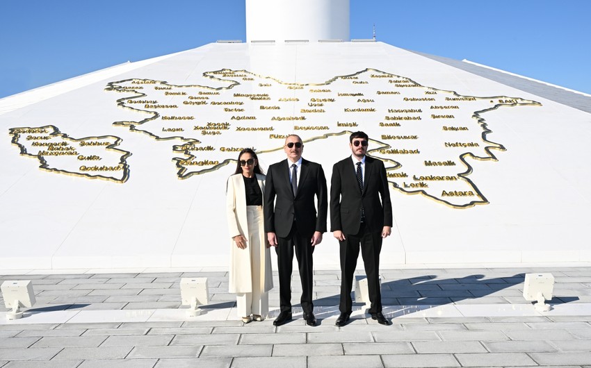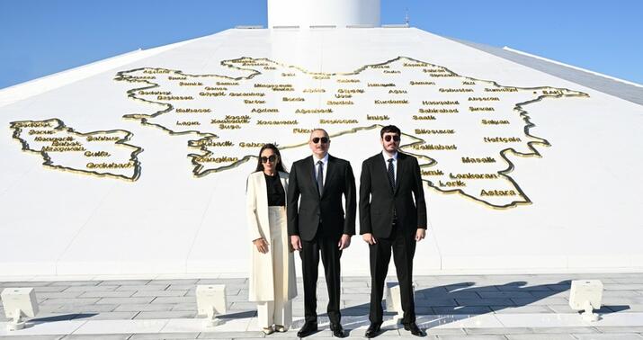 Teleqraf.com xəbər verir ki, dövlət başçısı burada Azərbaycanın üçrəngli Bayrağını ucaldıb.