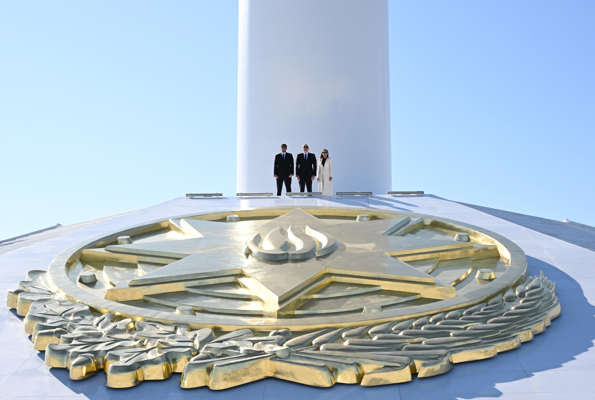 Azərbaycan Respublikasının Prezidenti İlham Əliyev, birinci xanım Mehriban Əliyeva və oğulları Heydər Əliyev noyabrın 8-də Bakıda Dövlət Bayrağı Meydanında olublar.