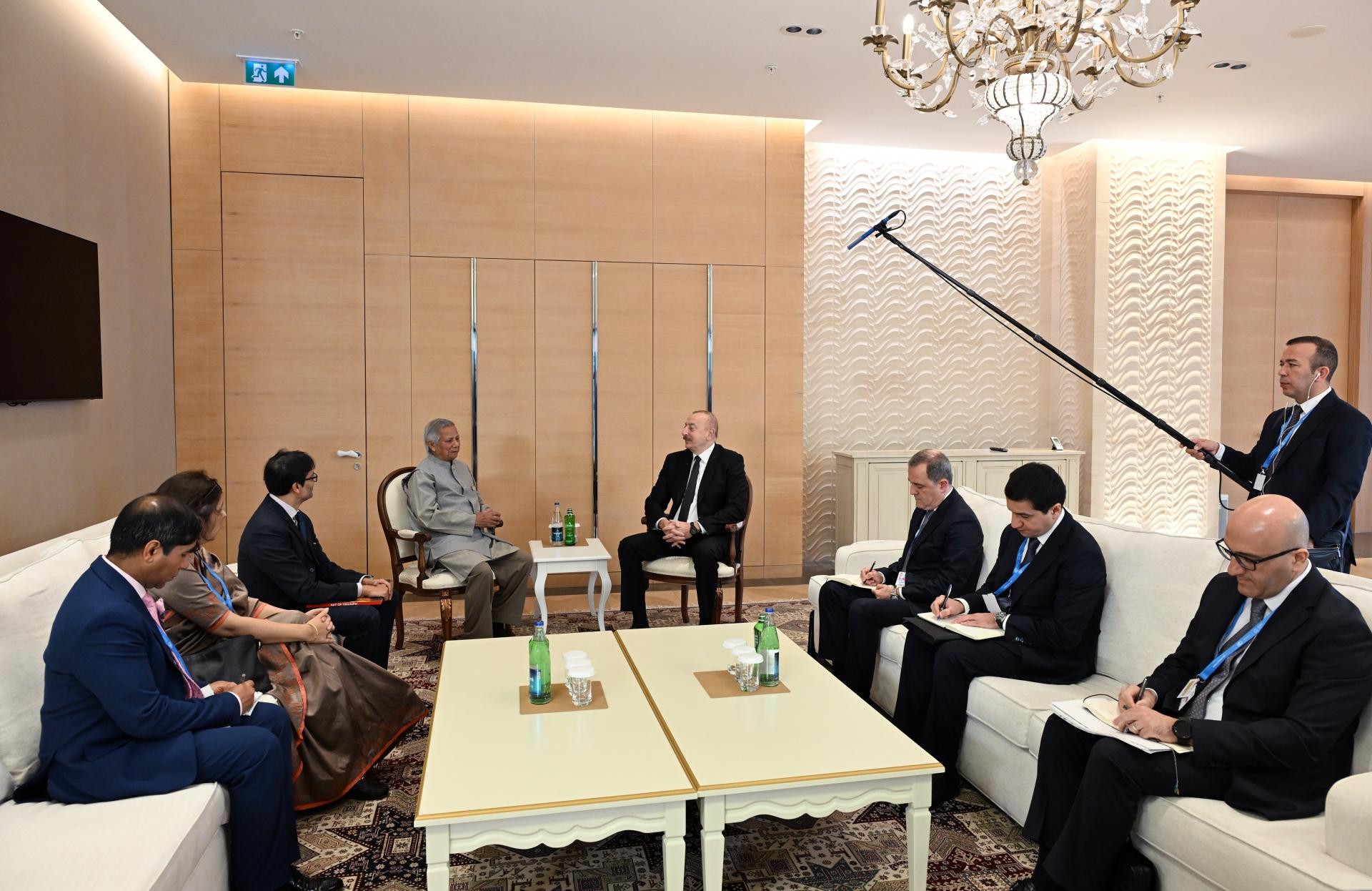 Azərbaycan Respublikasının Prezidenti İlham Əliyev noyabrın 14-də Banqladeş Xalq Respublikası Müvəqqəti Hökumətinin Baş müşaviri Məhəmməd Yunus ilə görüşüb.