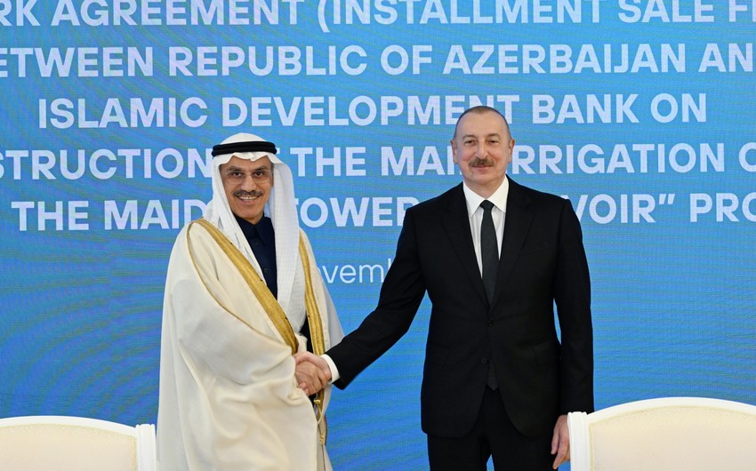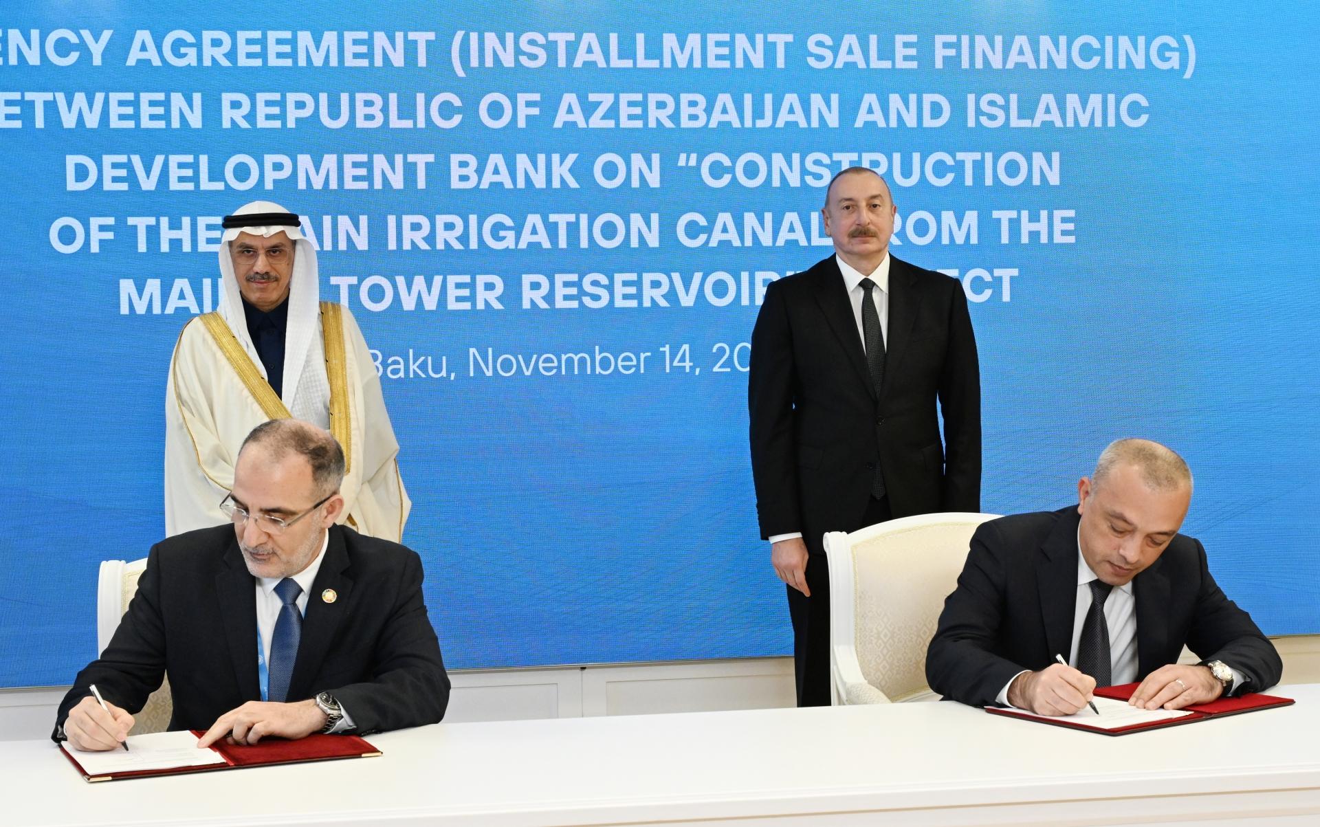 Teleqraf.com xəbər verir ki, əvvəlcə Azərbaycan Prezidenti İlham Əliyevin və İslam İnkişaf Bankının prezidenti Məhəmməd Əl-Casirin iştirakı ilə “Azərbaycan Respublikası və İslam İnkişaf Bankı arasında “Qız Qalası su anbarından magistral suvarma kanalının tikintisi” layihəsi üzrə Agentlik müqaviləsi, “Azərbaycan Respublikası Hökuməti və İslam İnkişaf Bankı arasında “Əks Əlaqə Texniki Yardım Qrant Sazişi Qız Qalası su anbarından magistral suvarma kanalının tikintisi layihəsi” və “Azərbaycan Respublikası və İslam İnkişaf Bankı arasında “Qız Qalası su anbarından magistral suvarma kanalının tikintisi” layihəsi üzrə Çərçivə Sazişi imzalanıb.