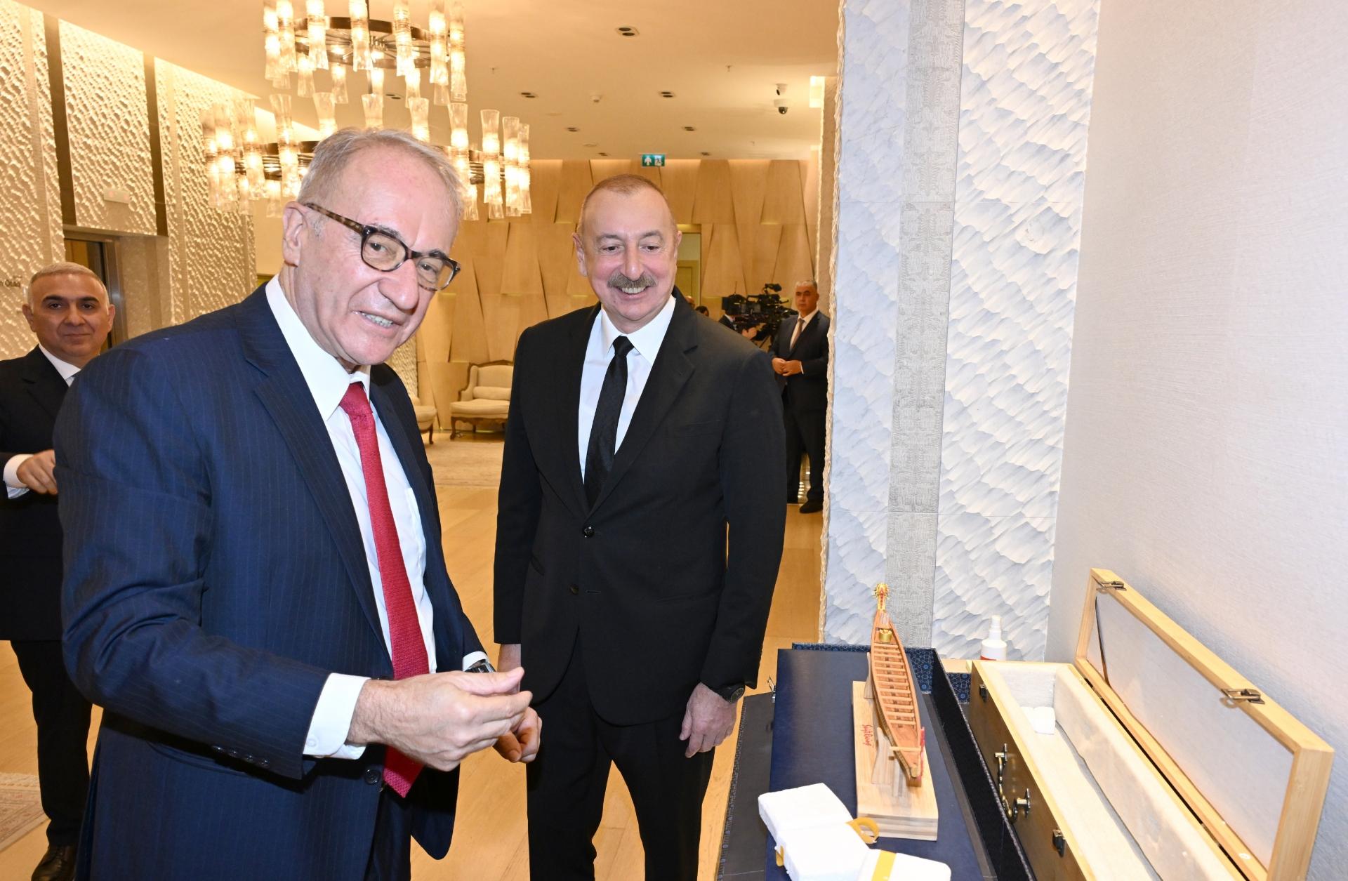Qonaqlar dövlətimizin başçısına xatirə hədiyyələri təqdim etdilər.