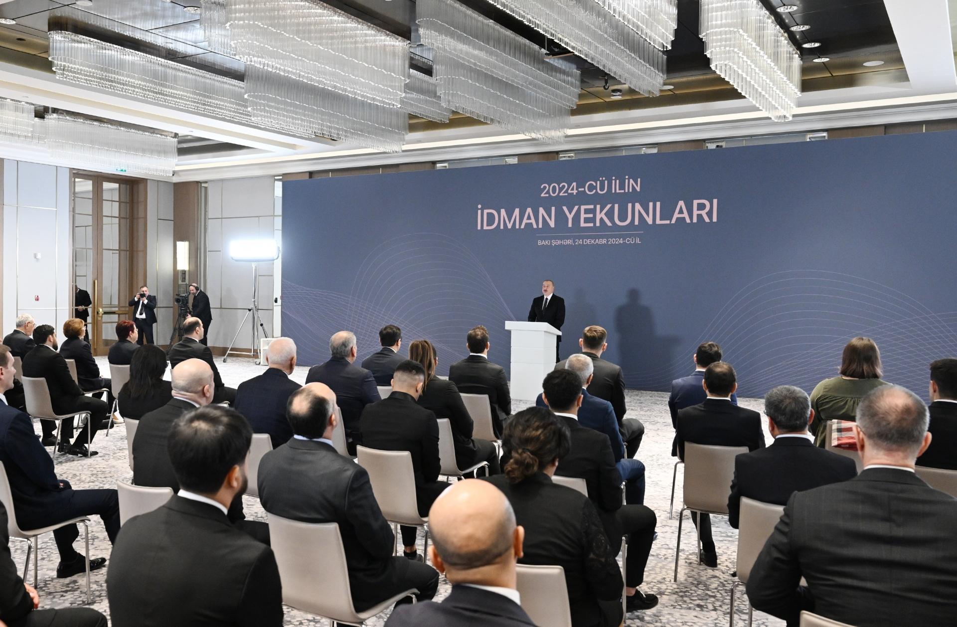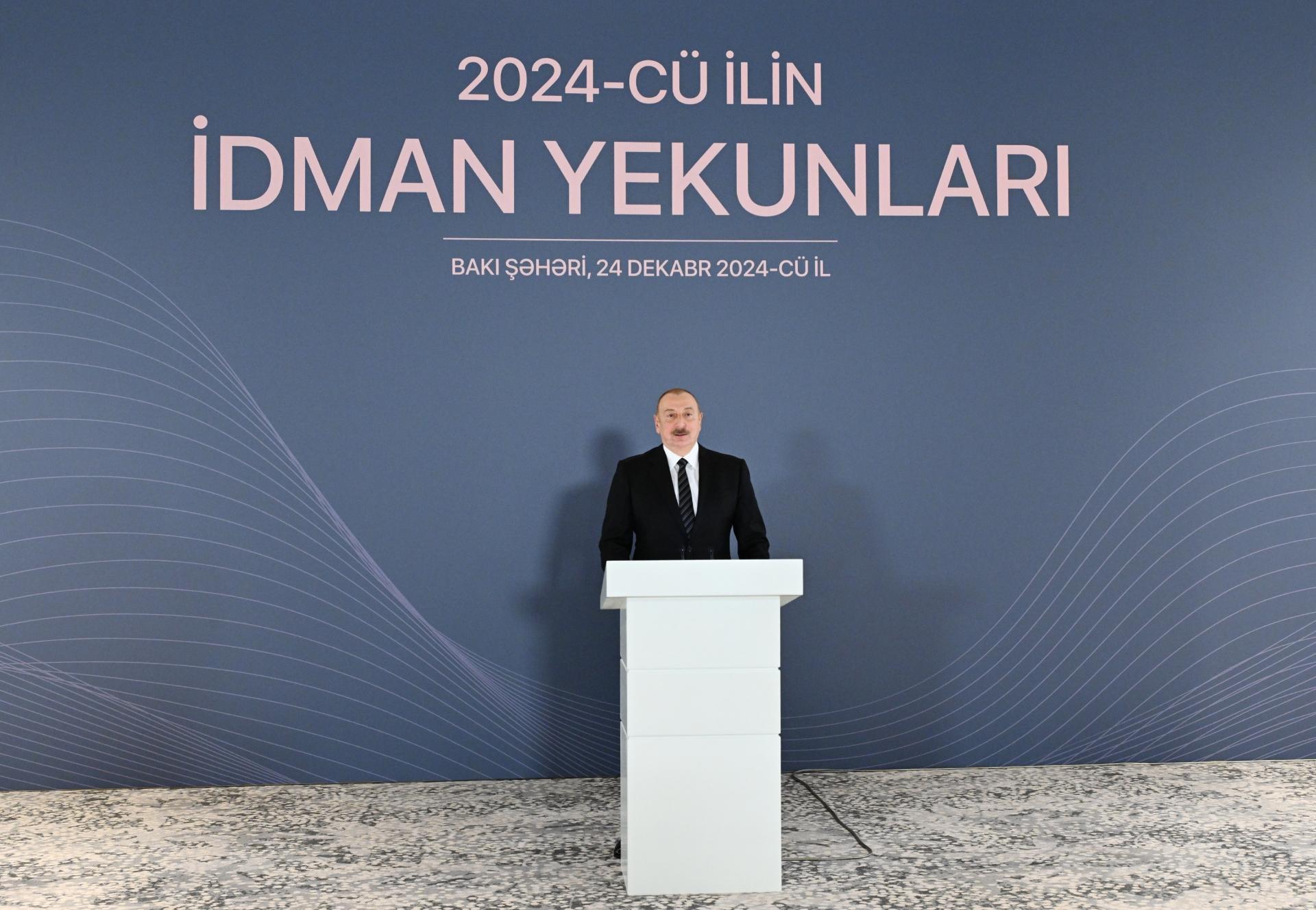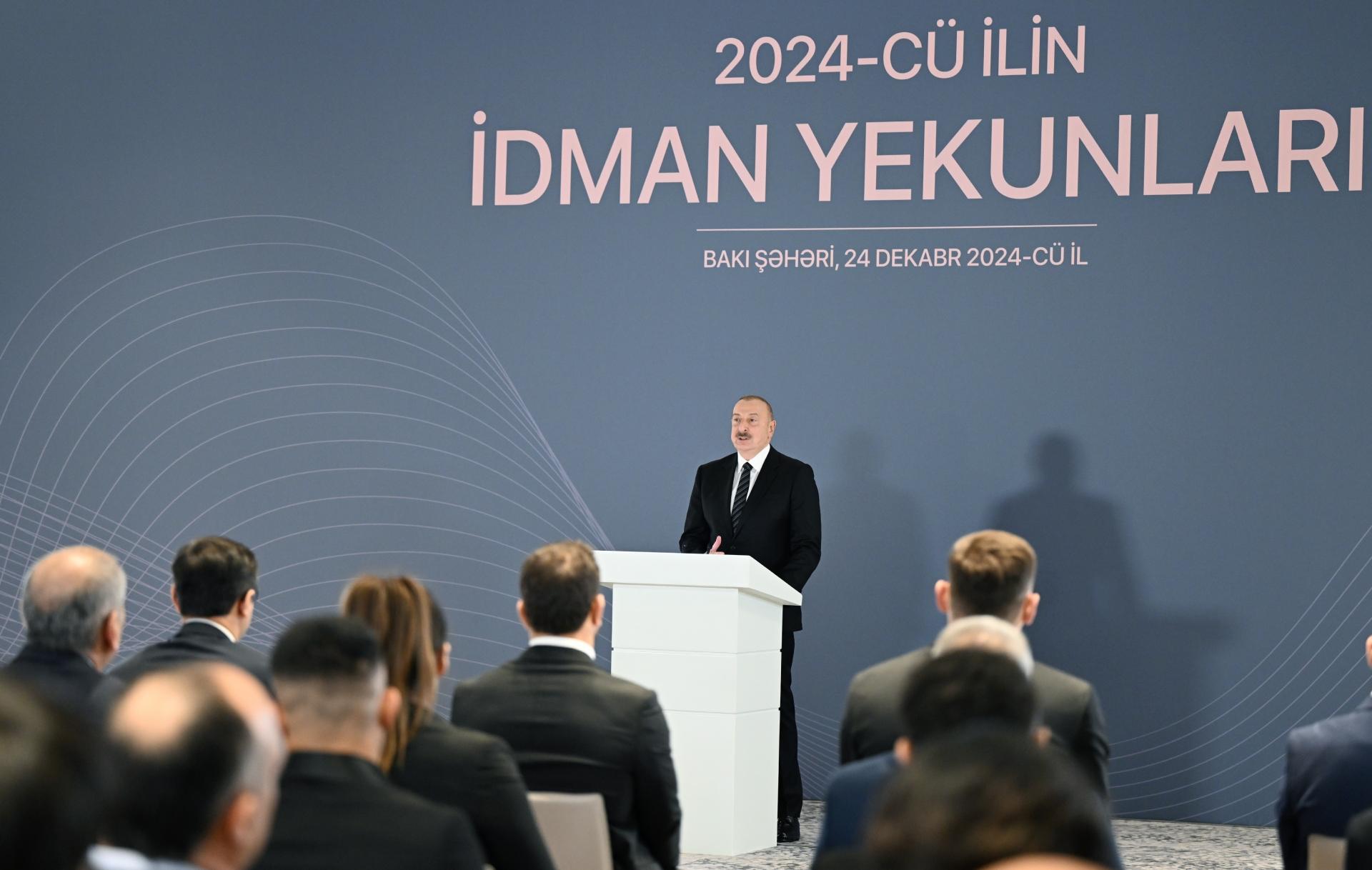 İlk növbədə, Azərbaycan idmançılarını bu il əldə edilmiş uğurlar münasibətilə təbrik etmək istəyirəm. 2024-cü il də Azərbaycan idmanı üçün uğurlu olmuşdur. Azərbaycan idmançıları beynəlxalq yarışlarda ölkəmizi ləyaqətlə təmsil etmişlər, 1700-ə yaxın medal qazanılmışdır. Bu, onu göstərir ki, idmanımız inkişaf edir, yeni nəsil idmançılar yetişir və beləliklə, Azərbaycan idman dövləti kimi öz gücünü müxtəlif beynəlxalq yarışlarda təsdiqləyir.