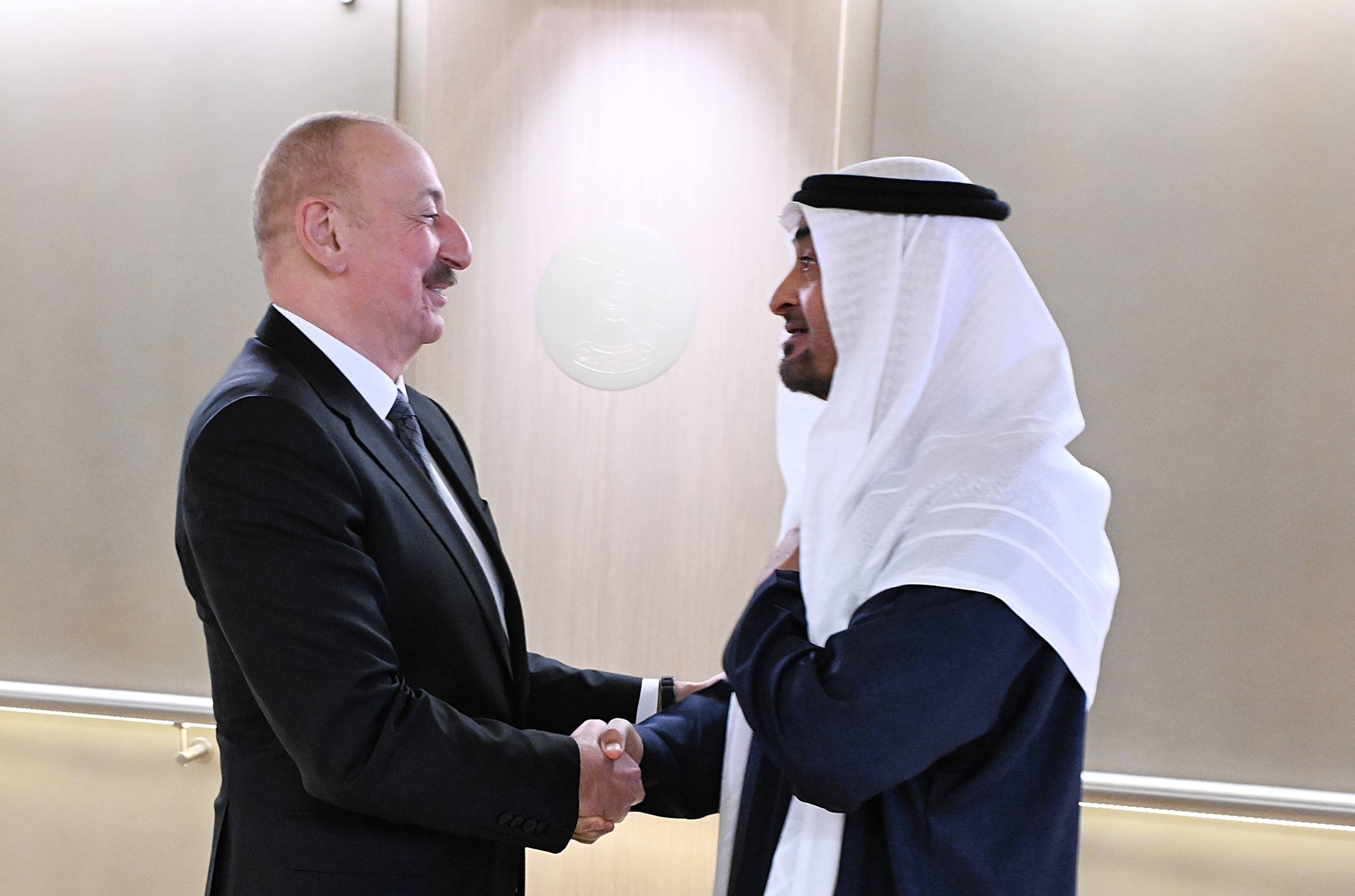 Prezident İlham Əliyevi Birləşmiş Ərəb Əmirliklərinin Prezidenti Şeyx Məhəmməd bin Zayed Al Nəhyan qarşıladı.