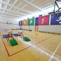 Təhsil ocağının idman korpusunda isə universal zal (basketbol, voleybol, gimnastika, qılıncoynatma və s.) və güləş zalı əsaslı təmir olunub. Bundan əlavə, trenajor, cüdo zalı, fizioterapiya otağı, reabilitasiya idman zalı, buxar və yardımçı otaqlar yenidən qurulub.