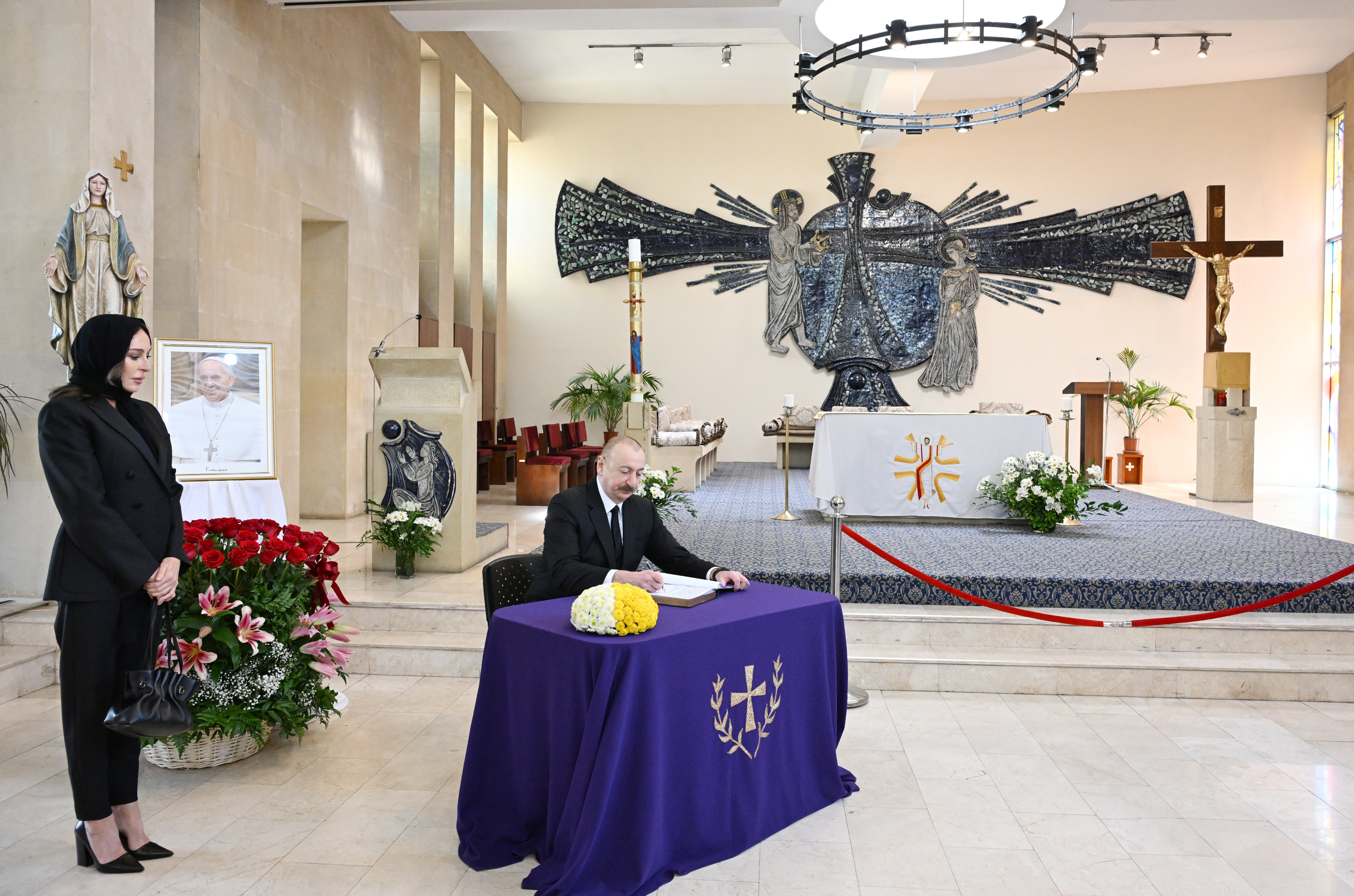 Azərbaycan Respublikasının Prezidenti İlham Əliyev və birinci xanım Mehriban Əliyeva aprelin 25-də Bakıdakı Müqəddəs Məryəm Ana katolik kilsəsində olub, Roma Papası Fransiskin vəfatı ilə əlaqədar başsağlığı veriblər.