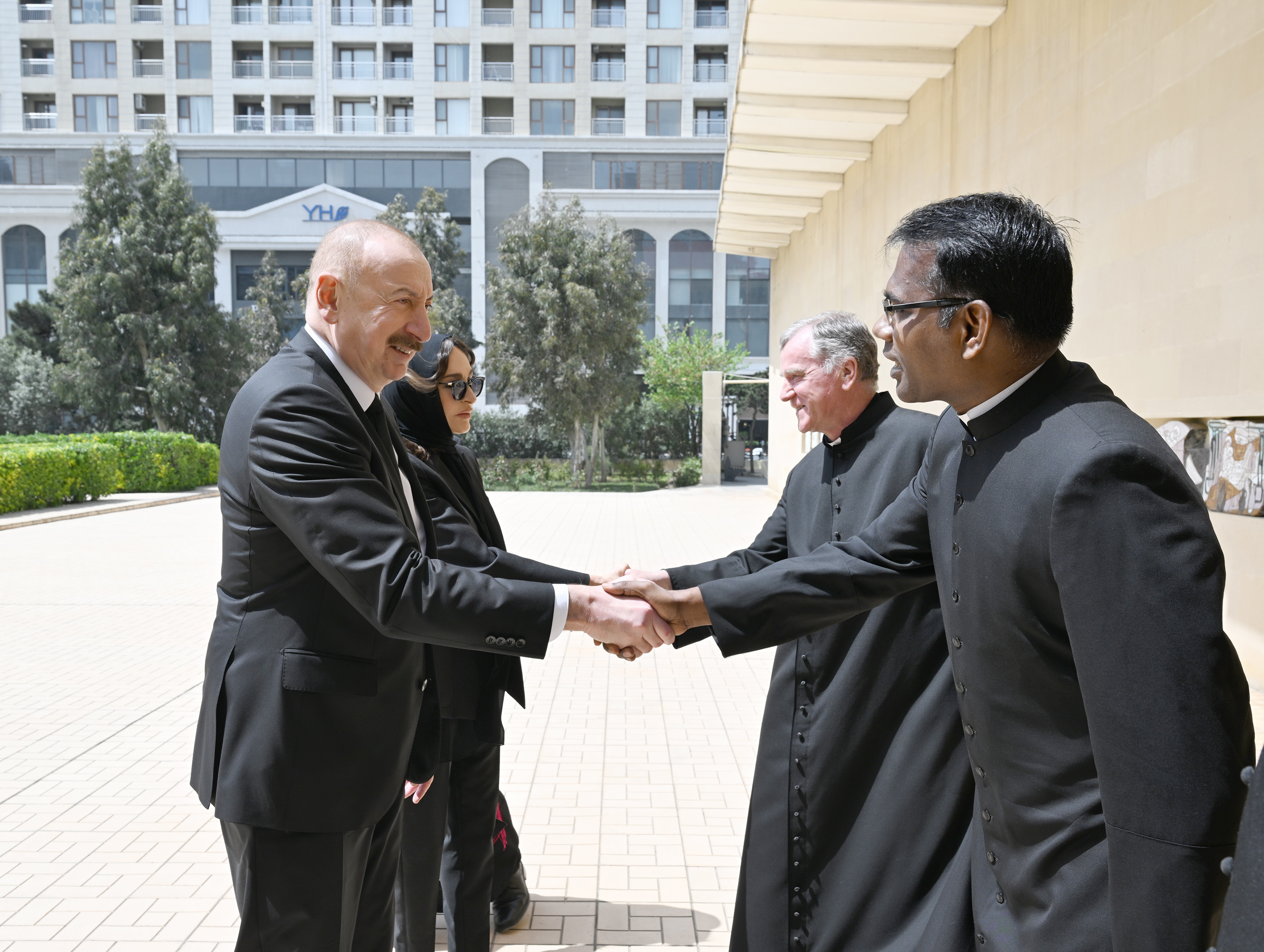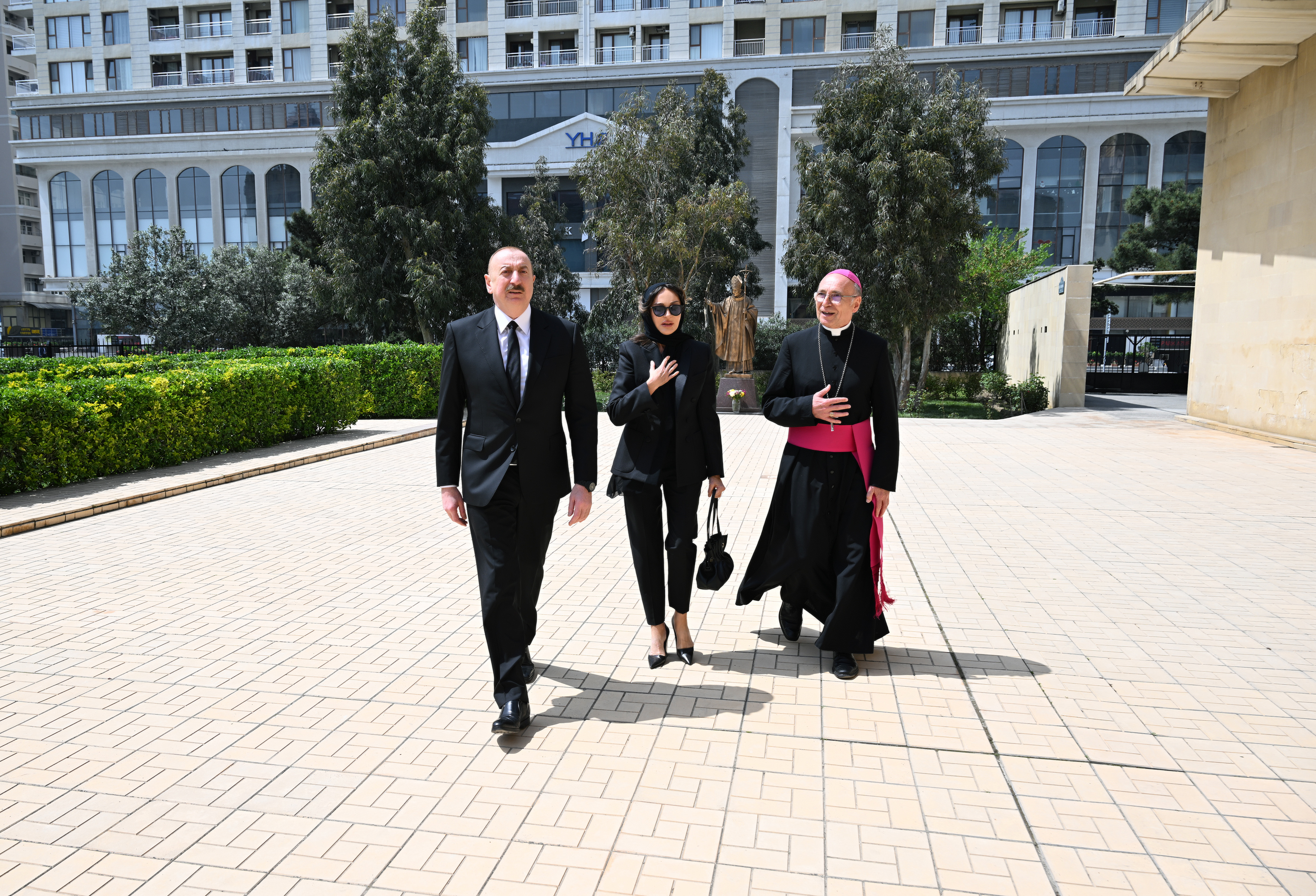 Teleqraf xəbər verir ki, dövlət başçısını və birinci xanımı Azərbaycanda Katolik Kilsəsinin apostol prefekti, yepiskop Vladimir Fekete qarşıladı.