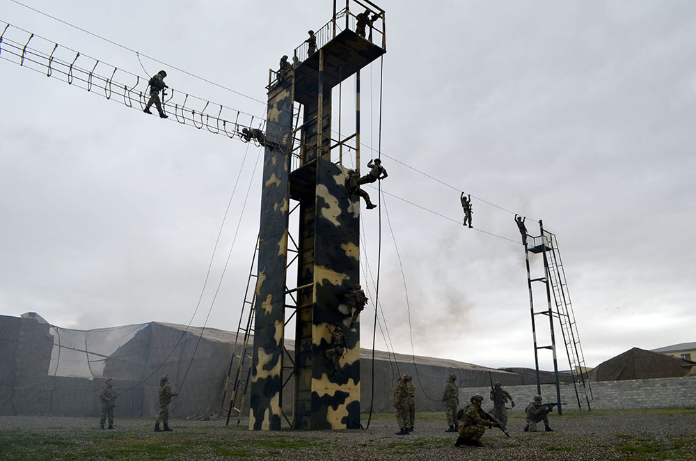 Qonaqlar tam təchizatlı komandoların sıra hazırlığına baxdıqdan sonra onların dağ komando qülləsində və kəşfiyyat cığırında fəaliyyətlərini izləyiblər.