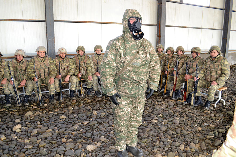 Məşğələlər zaman hərbi vəzifəlilər bölmələrimizin silahlanmasında olan atıcı silahların natamam sökülüb-yığılması üzrə praktiki vərdişlərini sınayıblar, həmçinin fərdi kimyəvi mühafizə vasitələrindən istifadə qaydalarını öyrəniblər.