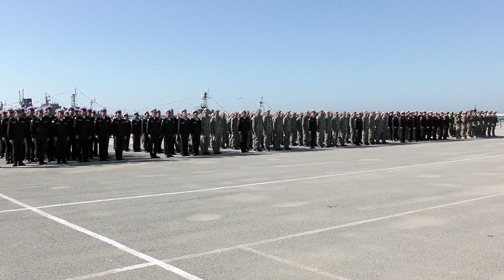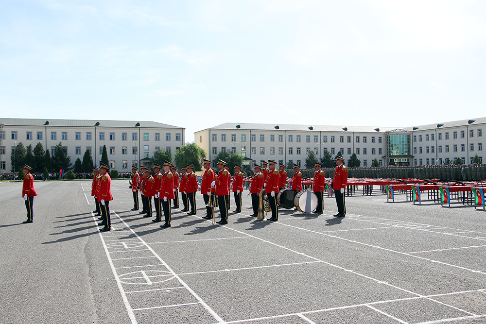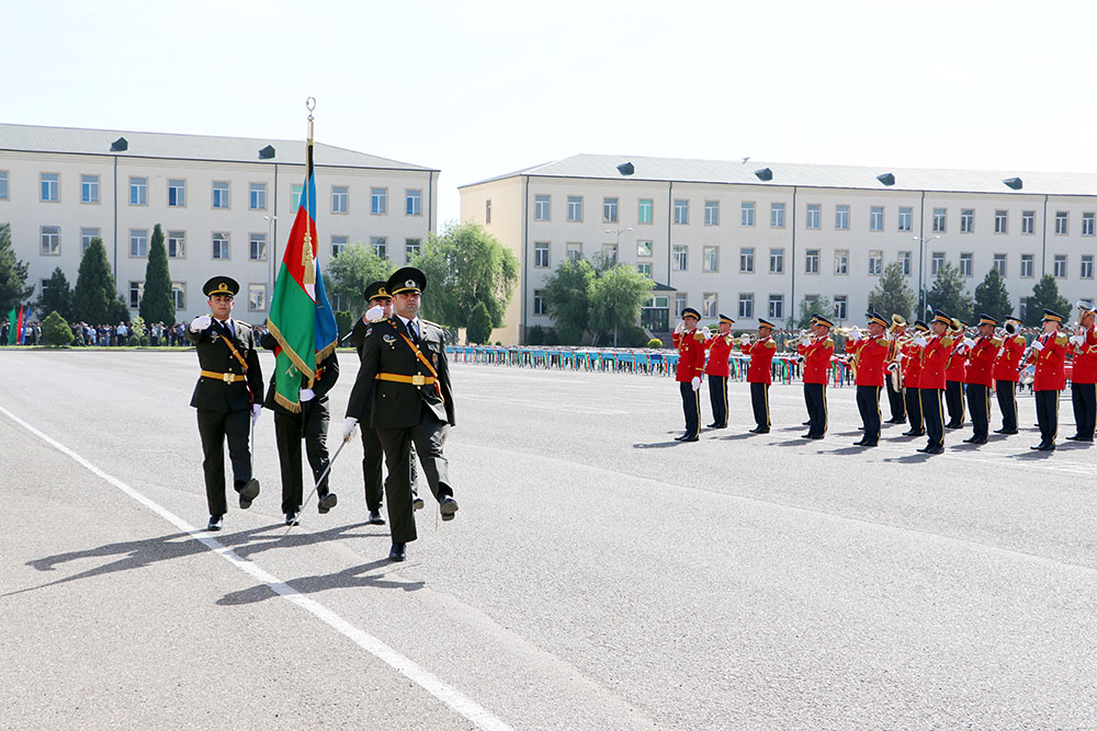 Hərbi orkestrlərin müşayiəti ilə döyüş bayraqları təntənəli surətdə sıra meydanlarına gətirildikdən sonra tədbirlər açıq elan olunub.