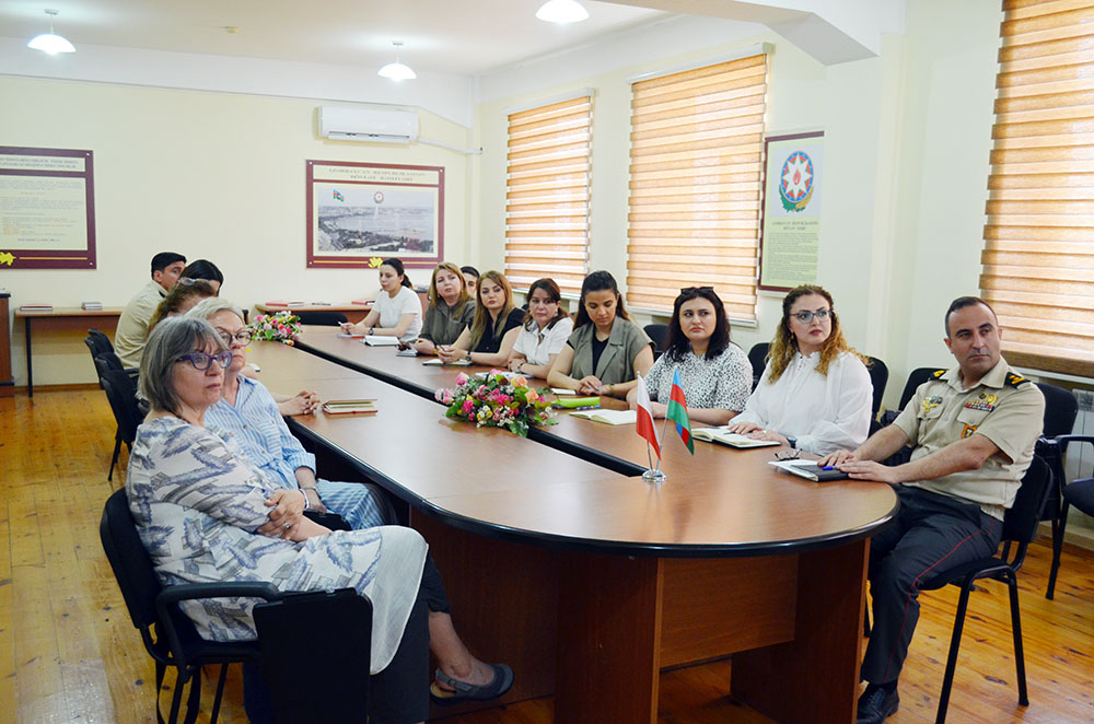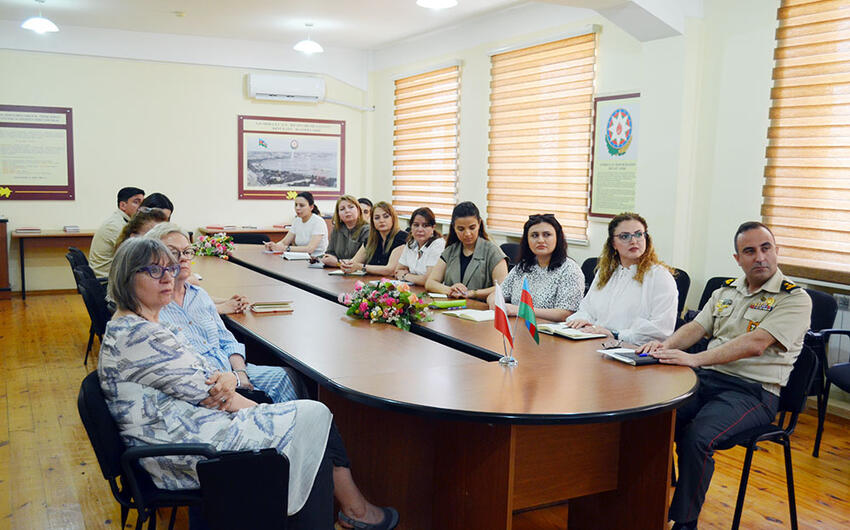 Azərbaycanda səfərdə olan Polşanın Yaroslav Dombrovski adına Hərbi Texnologiyalar Universitetinin ingilis dili müəllimlərindən ibarət nümayəndə heyəti Milli Müdafiə Universitetinin tabeliyində fəaliyyət göstərən Heydər Əliyev adına Hərbi İnstitutu ziyarət edib.