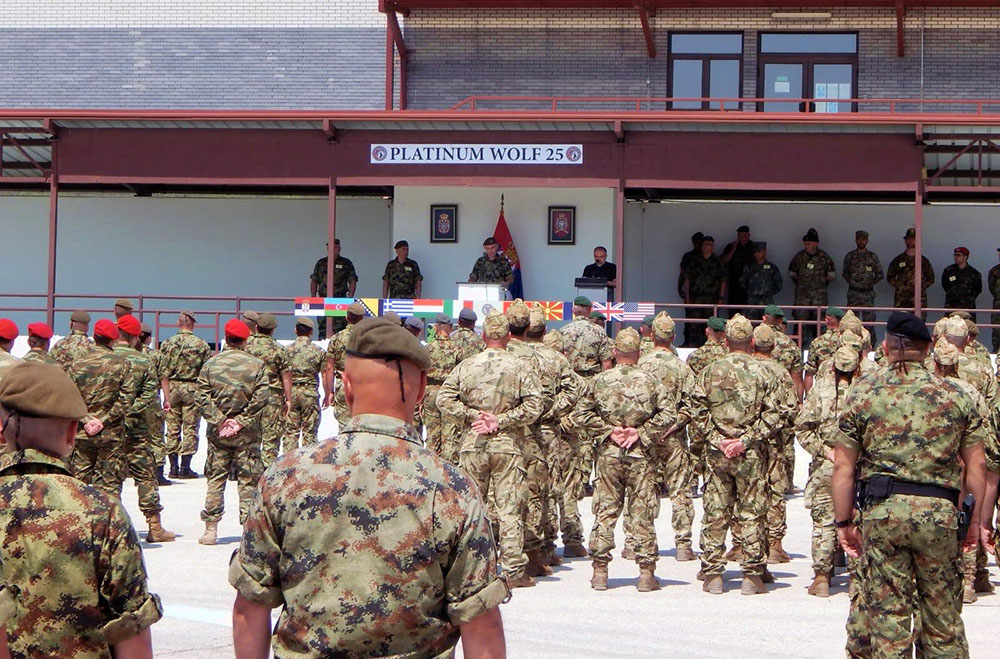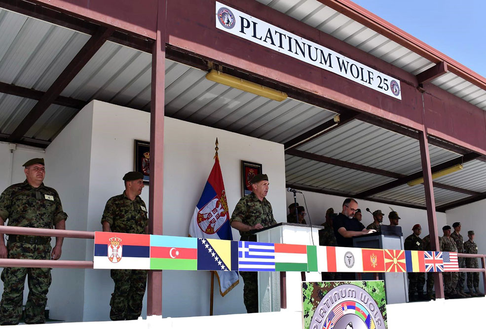 Azərbaycan Ordusunun bir qrup hərbi qulluqçusu Serbiyada keçirilən "Platinum Wolf - 2025" çoxmillətli sülhü dəstəkləmə əməliyyatları təlimində iştirak edir.