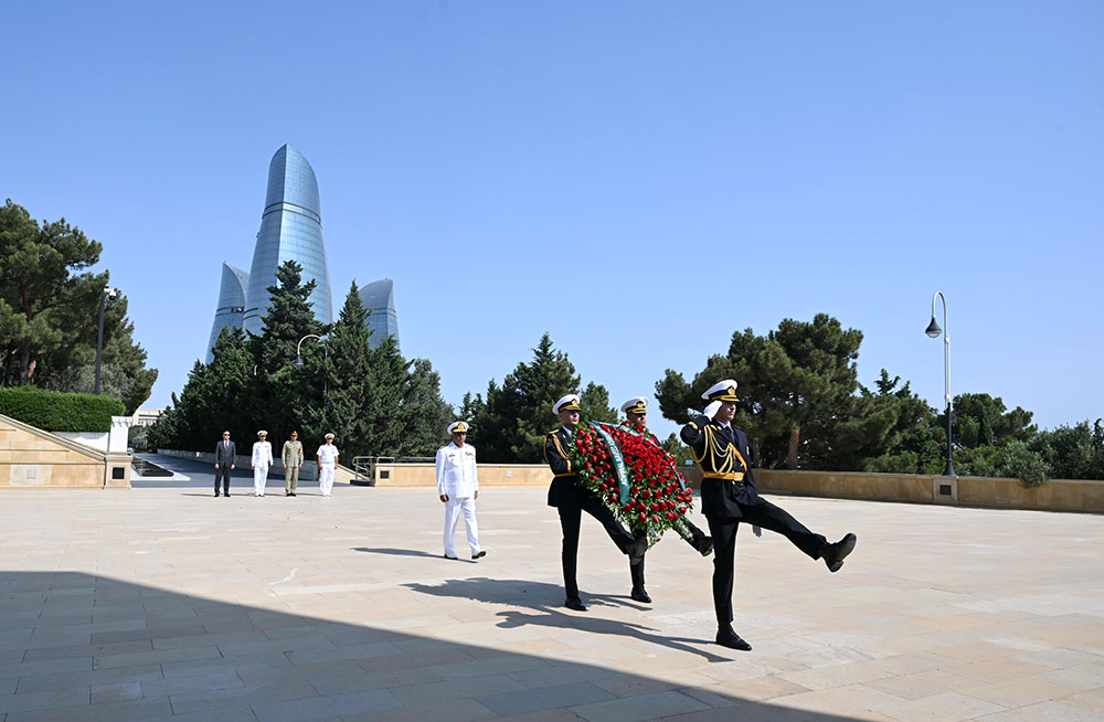 Görüşdən əvvəl qonaqlar Şəhidlər xiyabanında ölkənin müstəqilliyi və ərazi bütövlüyü uğrunda şəhid olmuş vətəndaşların məzarlarını ziyarət edərək gül dəstələri düzüb, “Əbədi məşəl” abidəsinin önünə əklil qoyublar.