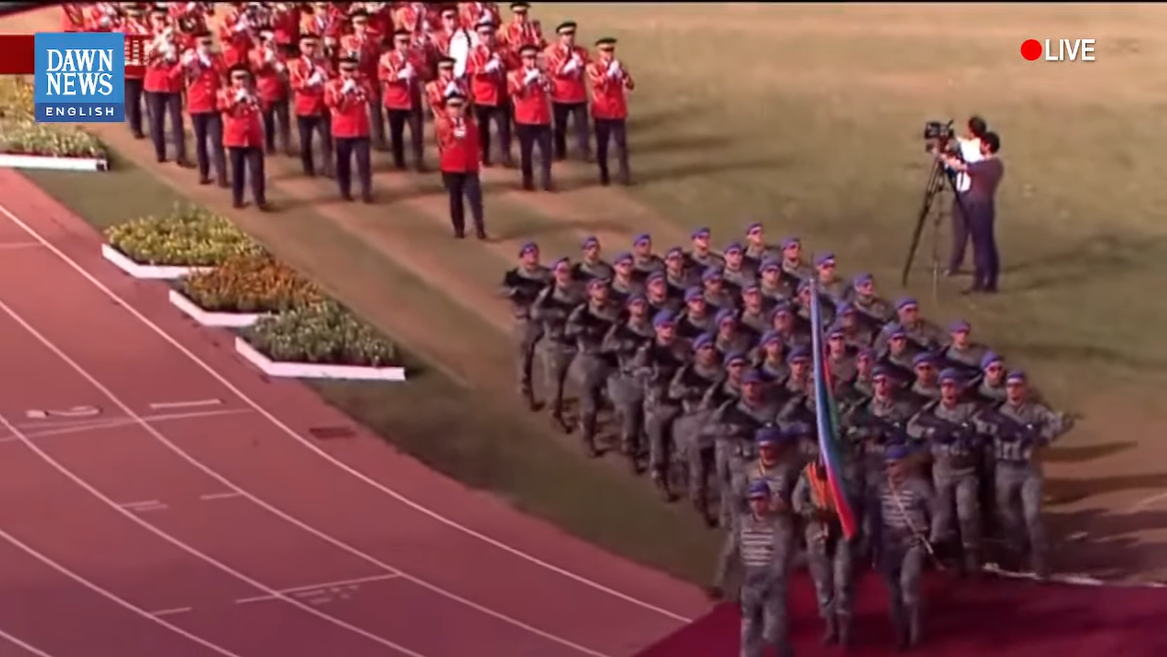 Şərhçi hərbçilərimizi Azərbaycan dilində “Pakistana xoş gəlmisiniz!” sözləri ilə salamlayaraq “Yaşasın Pakistan-Azərbaycan birliyi və qardaşlığı!” şüarını səsləndirib.