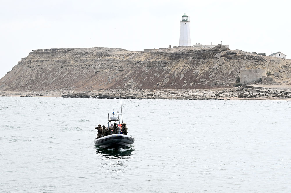 Təlim çərçivəsində axtarış-xilasetmə tədbirləri və qəzalı gəminin təxliyəsi üzrə fəaliyyətlərin icrası zamanı da yüksək peşəkarlıq nümayiş etdirilib.