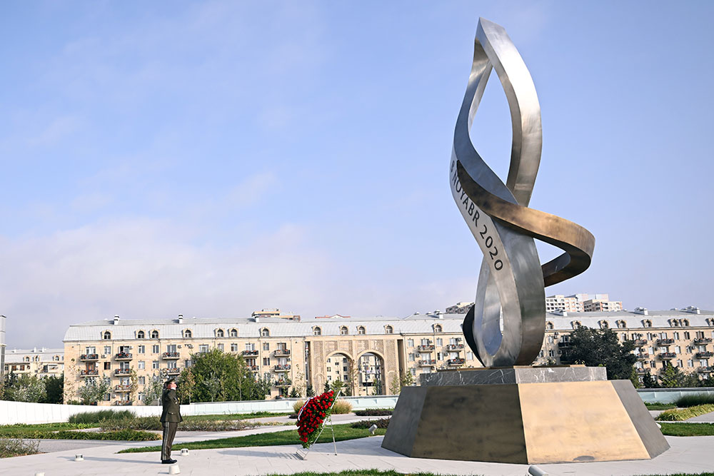 Sonra nümayəndə heyəti Zəfər parkını ziyarət edib, Zəfər abidəsinin önünə əklil qoyub.