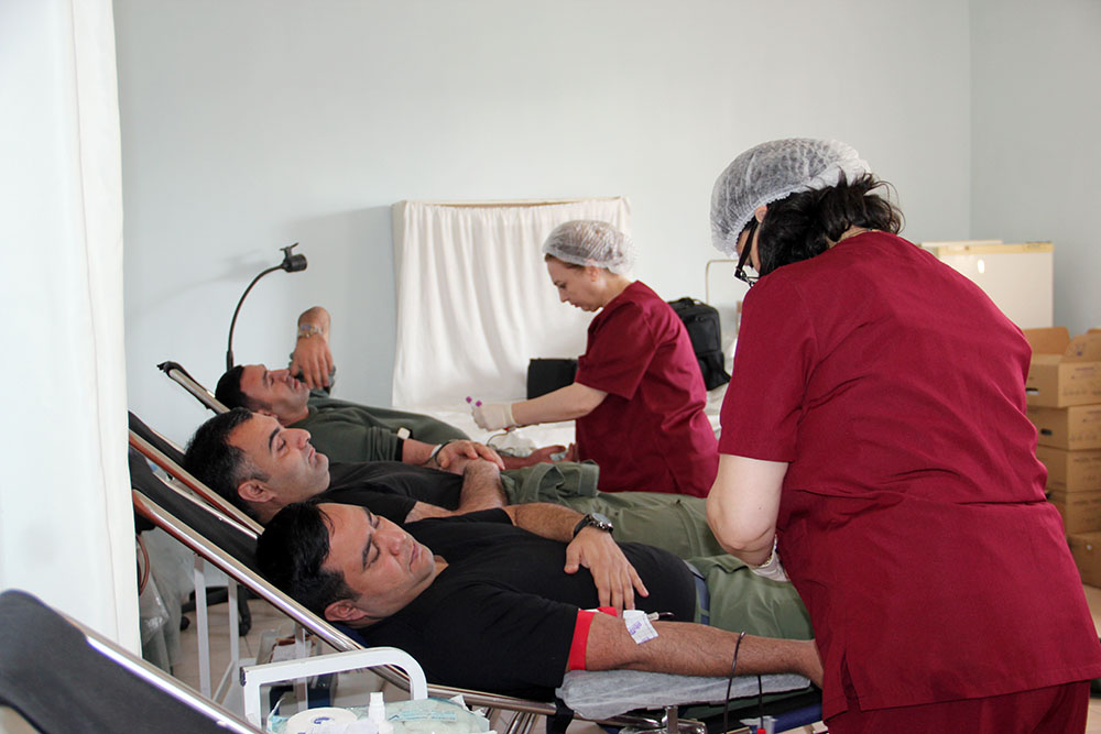 Talassemiya, hemofiliya və leykozdan əziyyət çəkən uşaqlar üçün qan ehtiyatının yaradılması məqsədilə keçirilən aksiyada hərbi hissənin şəxsi heyəti iştirak edib. Donorlar Milli Hematologiya və Transfuziologiya Mərkəzinin Qan Bankının səyyar tibb briqadası tərəfindən müayinə olunduqdan sonra onlardan qan götürülüb.