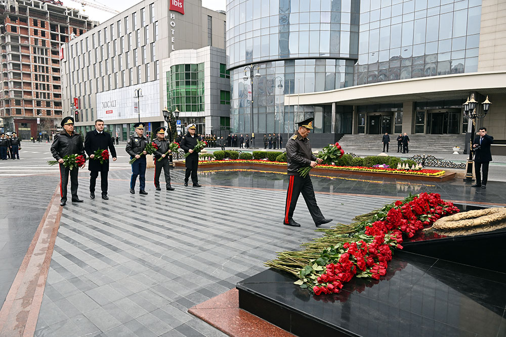 Müdafiə Nazirliyinin rəhbərliyi tərəfindən abidə önünə gül dəstələri düzülüb, faciə qurbanlarının xatirəsinə ehtiram nümayiş etdirilib.