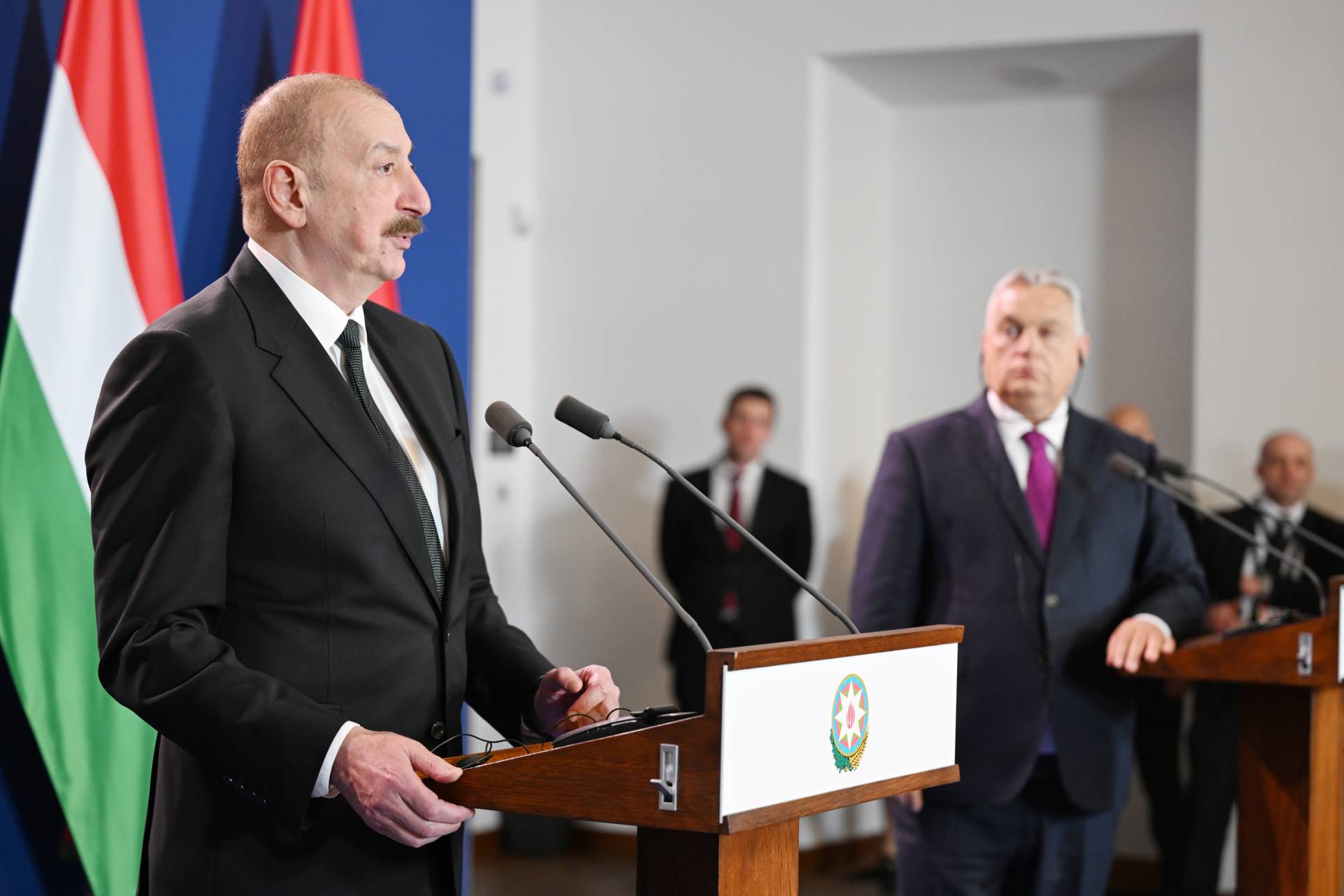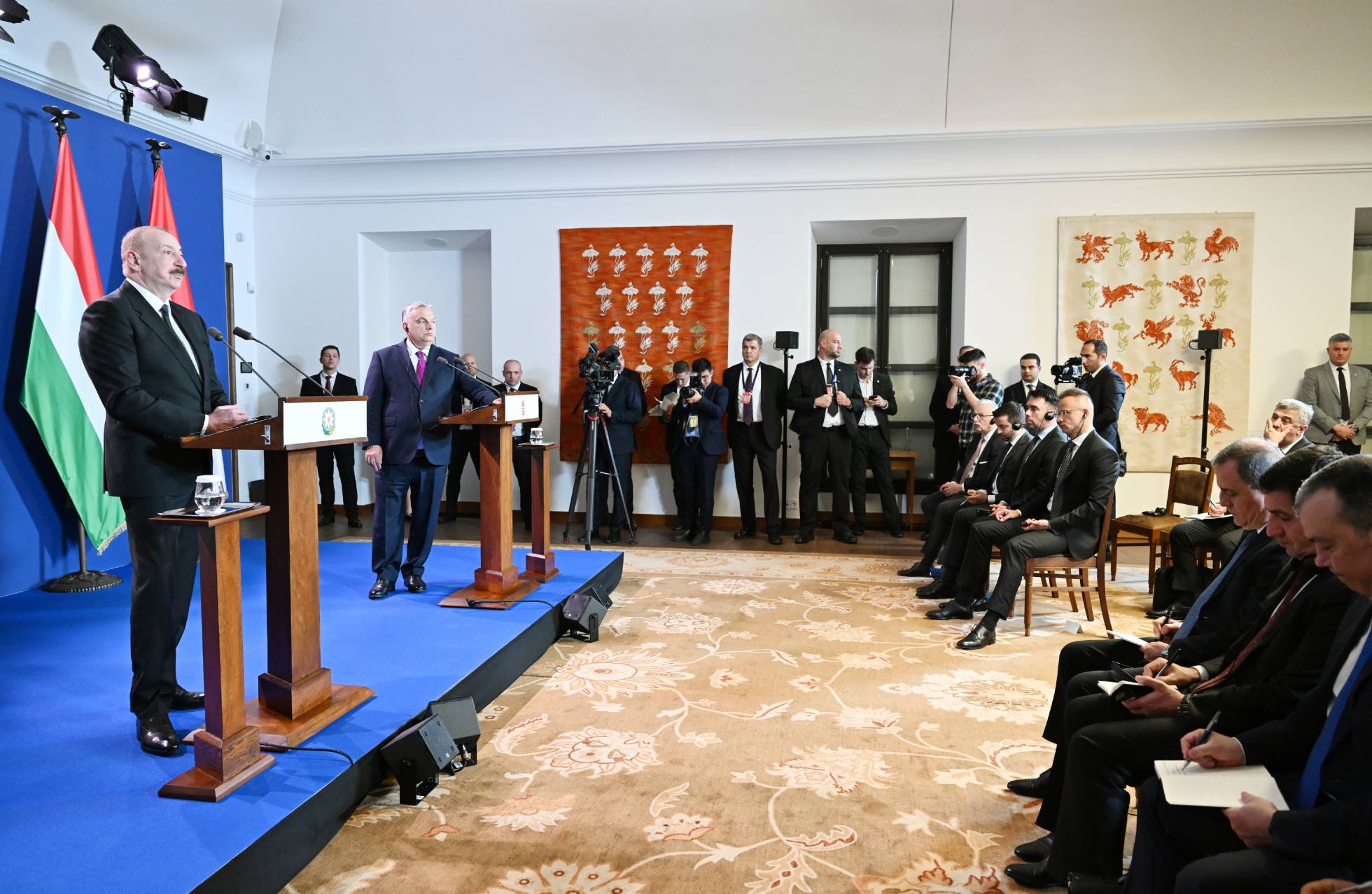 Azərbaycan Respublikasının Prezidenti İlham Əliyev və Macarıstanın Baş naziri Viktor Orban mətbuata bəyanatlarla çıxış edirlər.