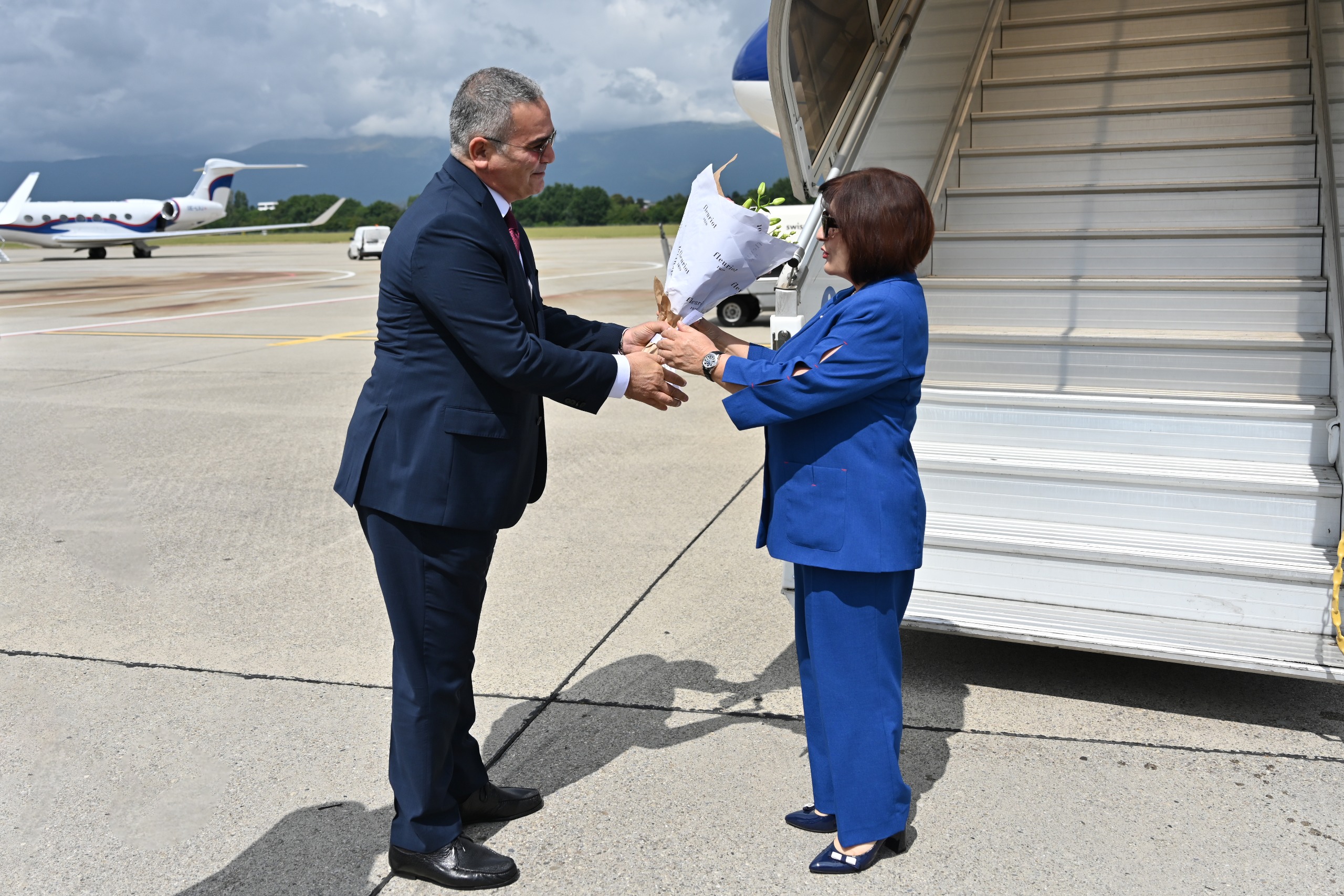Cenevrə hava limanında Milli Məclisin sədrini Azərbaycanın İsveçrədəki səfiri Fuad İsgəndərov, ölkəmizin BMT-nin Cenevrə bölməsindəki daimi nümayəndəsi Qalib İsrafilov və digər rəsmi şəxslər qarşılayıblar.