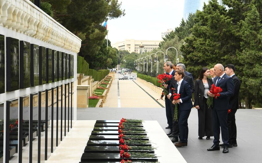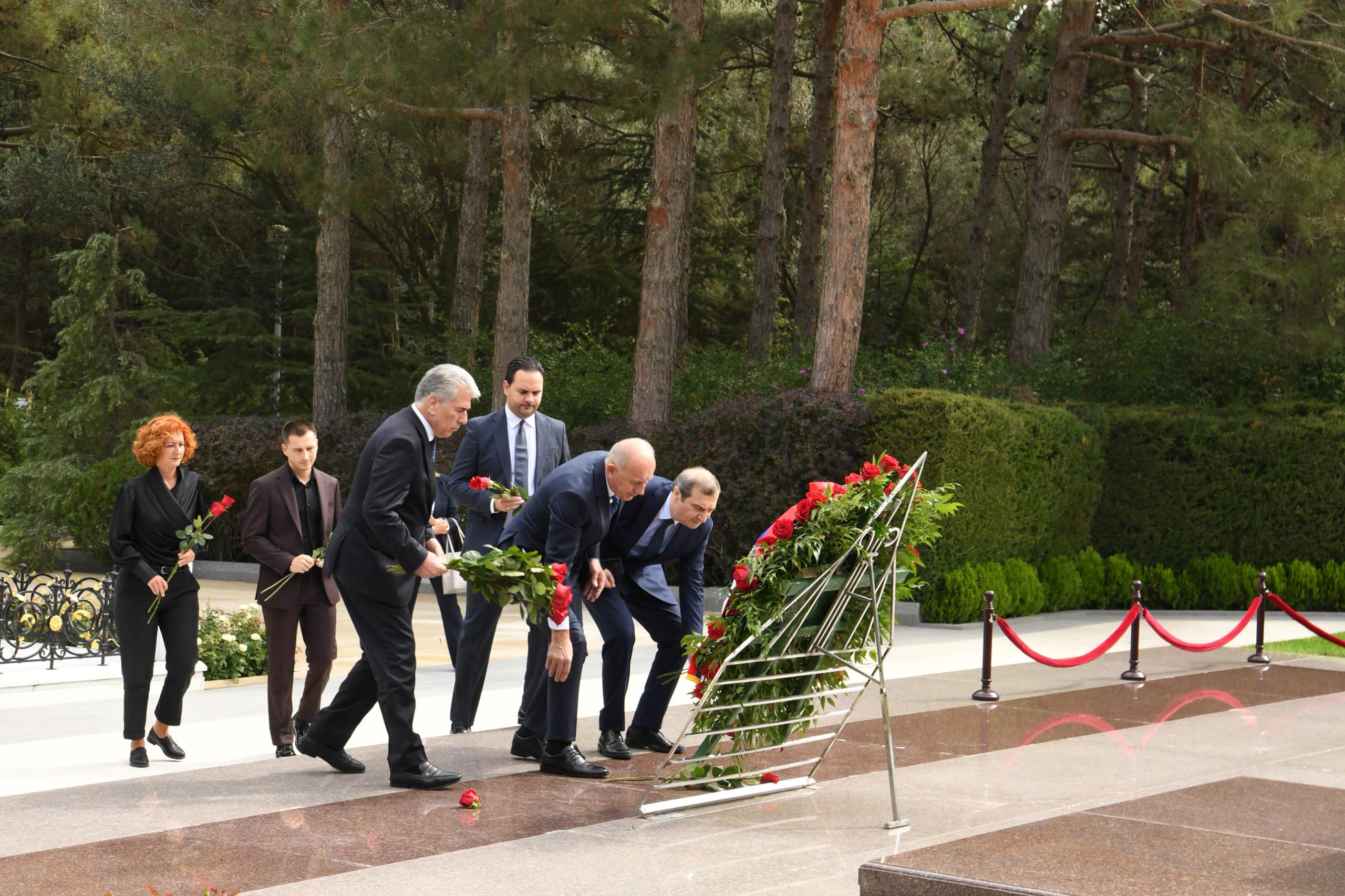 Sonra nümayəndə heyəti Şəhidlər xiyabanına gələrək, ölkəmizin azadlığı və suverenliyi uğrunda mübarizədə canlarından keçmiş qəhrəman Vətən övladlarının xatirəsini ehtiramla anıb, məzarları üzərinə tər çiçəklər düzüb, “Əbədi məşəl” abidəsi önünə əklil qoyub.