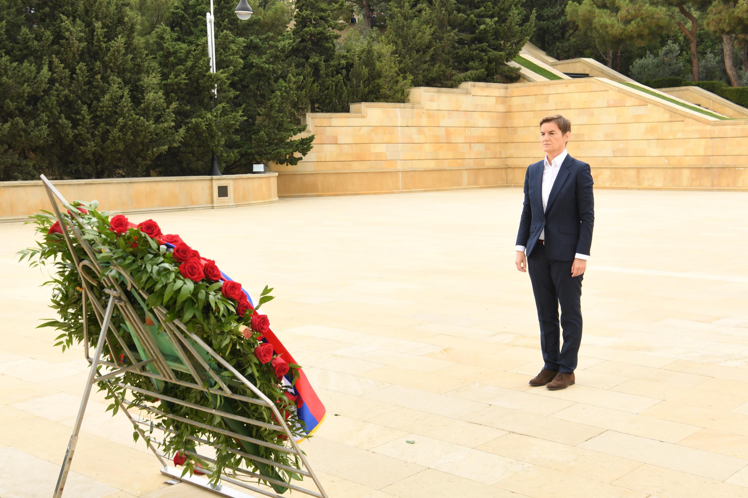 Ölkəmizdə rəsmi səfərdə olan Serbiya Milli Assambleyasının sədri Ana Brnabiçin başçılıq etdiyi nümayəndə heyəti sentyabrın 24-də Fəxri xiyabana gələrək xalqımızın Ümummilli Lideri, müasir müstəqil Azərbaycan dövlətinin memarı və qurucusu Heydər Əliyevin xatirəsini ehtiramla yad edib, məzarı önünə əklil qoyub, tər çiçəklər düzüb.