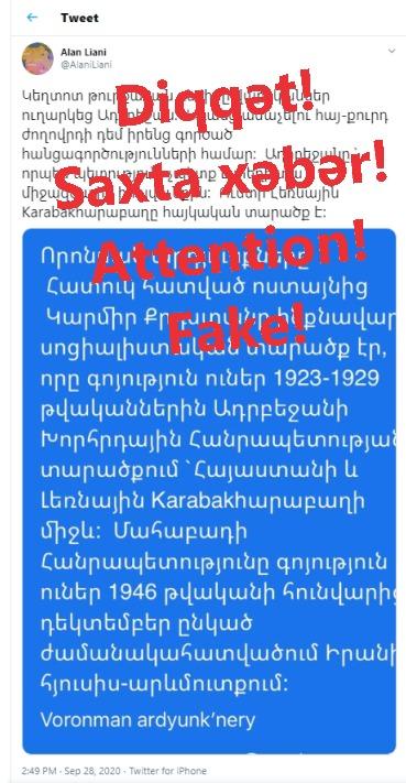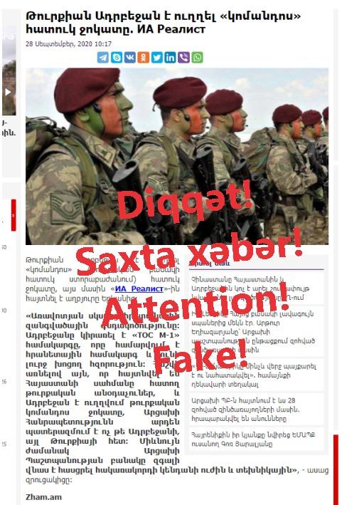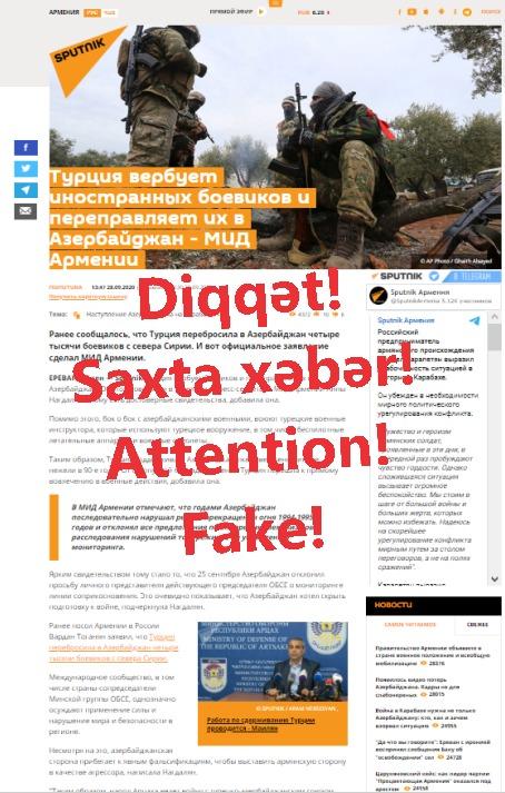 Azərbaycan Ordusunun həyata keçirdiyi əks hücum əməliyyatlarından sonra işğalçı Ermənistan tərəfindən saxta məlumatların yayılmasına başlanılıb.