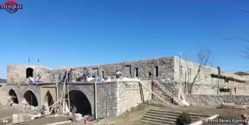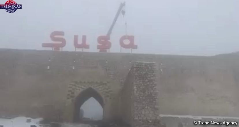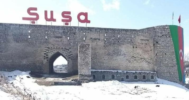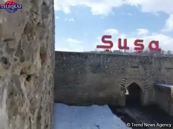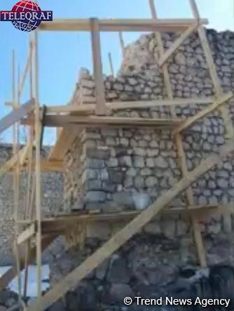 Qalanın girişinin uçmuş hissələri bərpa edilərək əvvəlki vəziyyətə gətirilib, girişin üzərindəki "Şuşa" yazısı da öz yerini alıb.