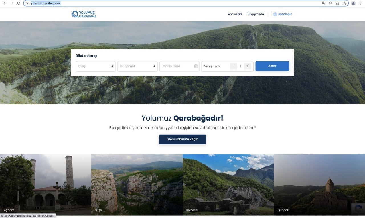 Azərbaycanın işğaldan azad edilmiş ərazilərə müntəzəm səfərlərlə bağlı yaradılan yolumuzqarabaga.az portalı bu gündən işə düşüb.