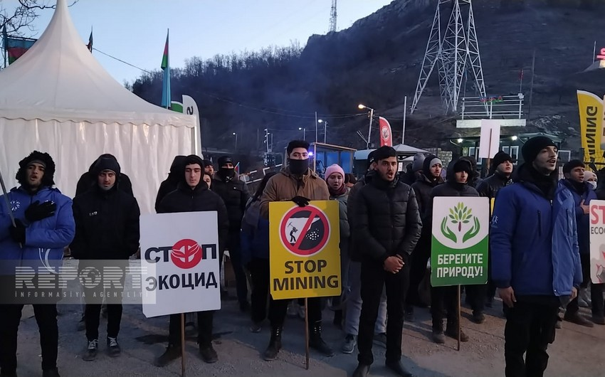 Hazırda havanın şaxtalı olmasına baxmayaraq, ekofəallar yolun hər iki tərəfində, hərəkətə maneə törətmədən üzərində Azərbaycan, rus və ingilis dillərində yazılmış plakatlar qaldırıb, şüarlar səsləndirirlər.