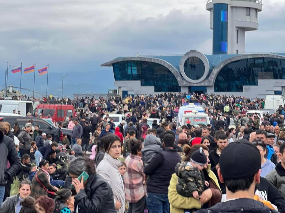 Xankəndidə yaşayan mülki ermənilər təxliyə üçün hava limanına üz tuturlar.