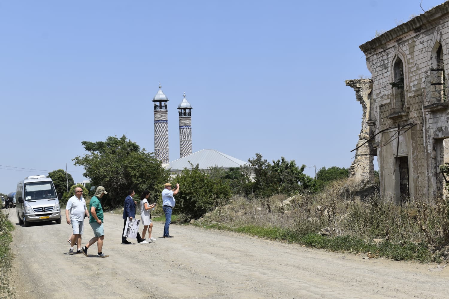 Sonra nümayəndə heyəti Ağdam Cümə məscidində olub, şəhərin mərkəzi küçəsində ermənilərin yerlə-yeksan etdikləri binaların qalıqlarına baxıb. Azərbaycan Respublikası Prezidentinin xüsusi nümayəndəliyinin əməkdaşı onlara işğalçı Ermənistanın 30 il ərzində Ağdam rayonunun ərazisində törətdiyi dağıntılar, vandalizm aktları, o cümlədən mədəni, tarixi, dini abidələri məhv etmələri barədə məlumat verib. Bildirilib ki, erməni vandalları işğal etdikləri digər şəhər və kəndlər kimi Ağdam şəhərini də talayıb və yer üzündən siliblər. Bütün evlər, sosial obyektlər dağıdılıb, təsərrüfatlar məhv edilib. 44 günlük Vətən müharibəsində qazanılan qələbədən sonra işğaldan azad olunan ərazilərdə genişmiqyaslı bərpa-quruculuq işlərinə başlanılıb.