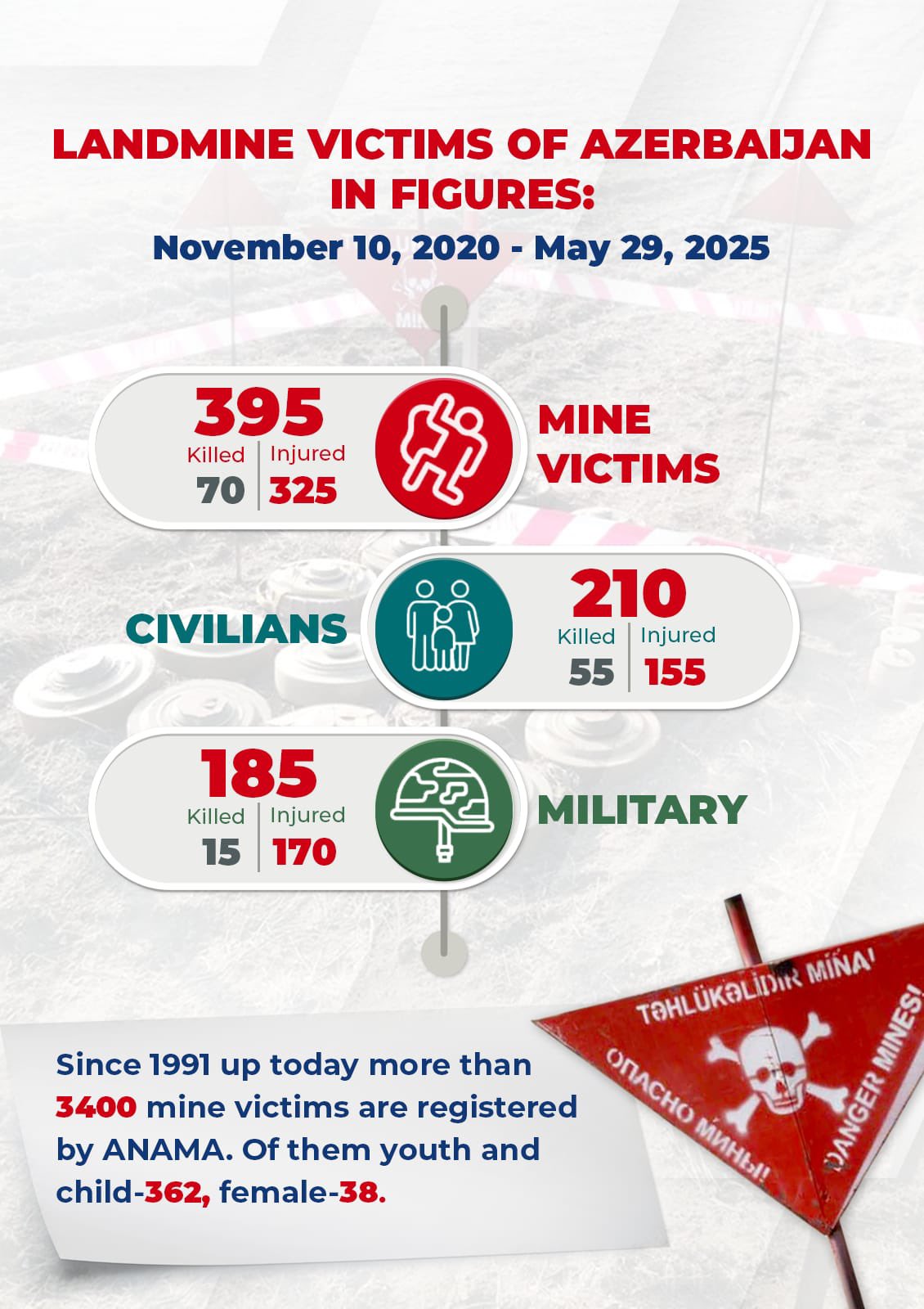 2020-ci ildən indiyədək 400-ə yaxın Azərbaycan vətəndaşı mina partlayışlarının qurbanı olub.